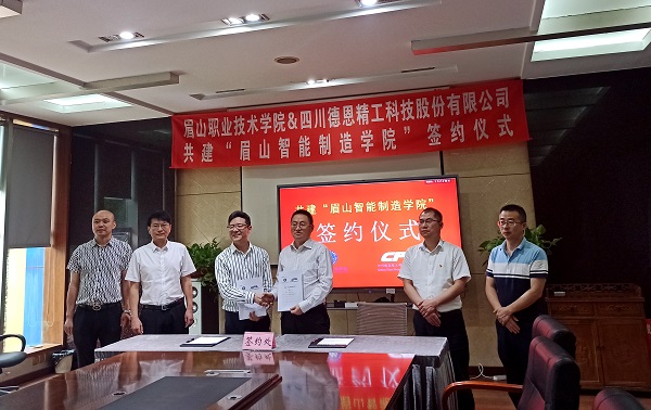 5月21日,在青神县人民政府、眉山市机械协会、眉山市经济与信息化局、眉山市人力资源与社会保障局等单位的支持下,眉山职业技术学院和四川德恩精工科技股份有限公司就共建“眉山智能制造学院”签订战略合作协议。