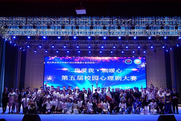 5月25日,眉山职业技术学院在艺术中心举行第五届“我爱我·剧暖心”校园心理剧大赛,各系(部)推选的六支参赛队伍参加比赛。学校党委委员、副院长胡洪安出席大赛,全校1100余名师生共同观看比赛。