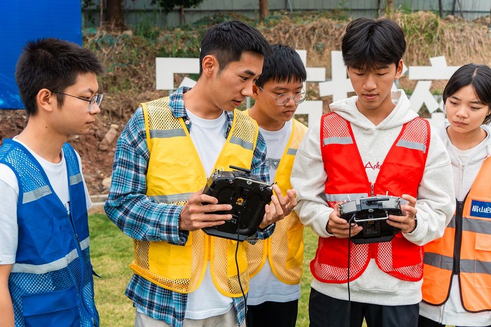 在活动筹备现场,大一新生李晓阳小心翼翼地检查着每一架无人机的电池状态。“虽然刚入学不久,但老师带领我们参与了全过程。”他激动地说。由罗仕兴、刘琳、邓旭、黄波涛等专业教师组成的指导团队,带领40名无人机应用技术专业新生,完成了从设备清点、场地规划到烟花挂载、灯光调试等关键环节。这场实战,成为了他们入学后最生动的“第一课”。