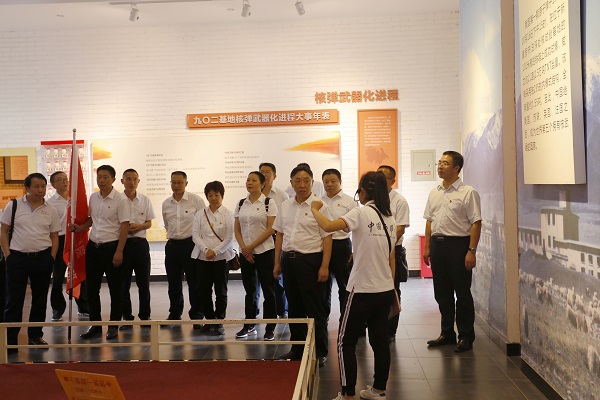 党员同志们跨过精英门,紧跟解说员的脚步,先后参观了“两弹历程馆”“三防教育馆”“两弹模型馆”等场馆。馆内利用声、光、电等手段,通过实物、模型、影像资料和场景复原,展现“两弹”研制工作的艰辛历程。一张张珍贵图片、一份份发黄文件、一个个感人故事把大家的思绪带到了那个激情燃烧的岁月,让大家深切感受到了我国“两弹”研制的艰辛历程。