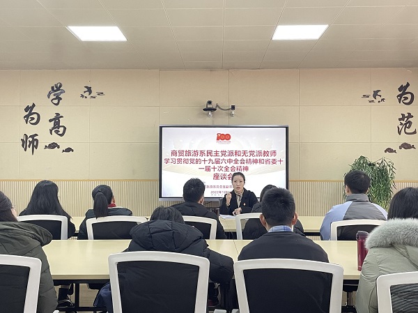 1月5日,商贸旅游系在1502教室召开学习贯彻党的十九届六中全会精神和省委十一届十次全会精神座谈会,全系民主党派和无党派教师20余人参加会议。
