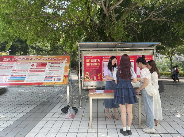 为进一步推动《信访工作条例》学习宣传和贯彻落实,引导师生依法合理表达信访诉求,5月10日,党政办公室在西苑食堂外开展《信访工作条例》实施一周年宣传日活动。