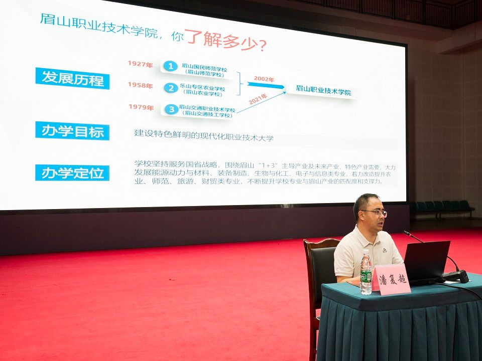 学院党总支副书记(主持工作)潘复超为全体新生作入学教育专题讲座。潘书记以《看清形势,适应制度,玩转眉职》为题,用详实的数据和生动的案例,深入分析了当代大学生面临的机遇与挑战,详细解读了教学管理、学生管理中的各项规章制度,并围绕学业规划、能力提升、身心健康等方面为同学们“充实快乐玩转眉职”提供了宝贵而中肯的建议。讲座内容充实,互动性强,在现场新生中引起热烈反响。