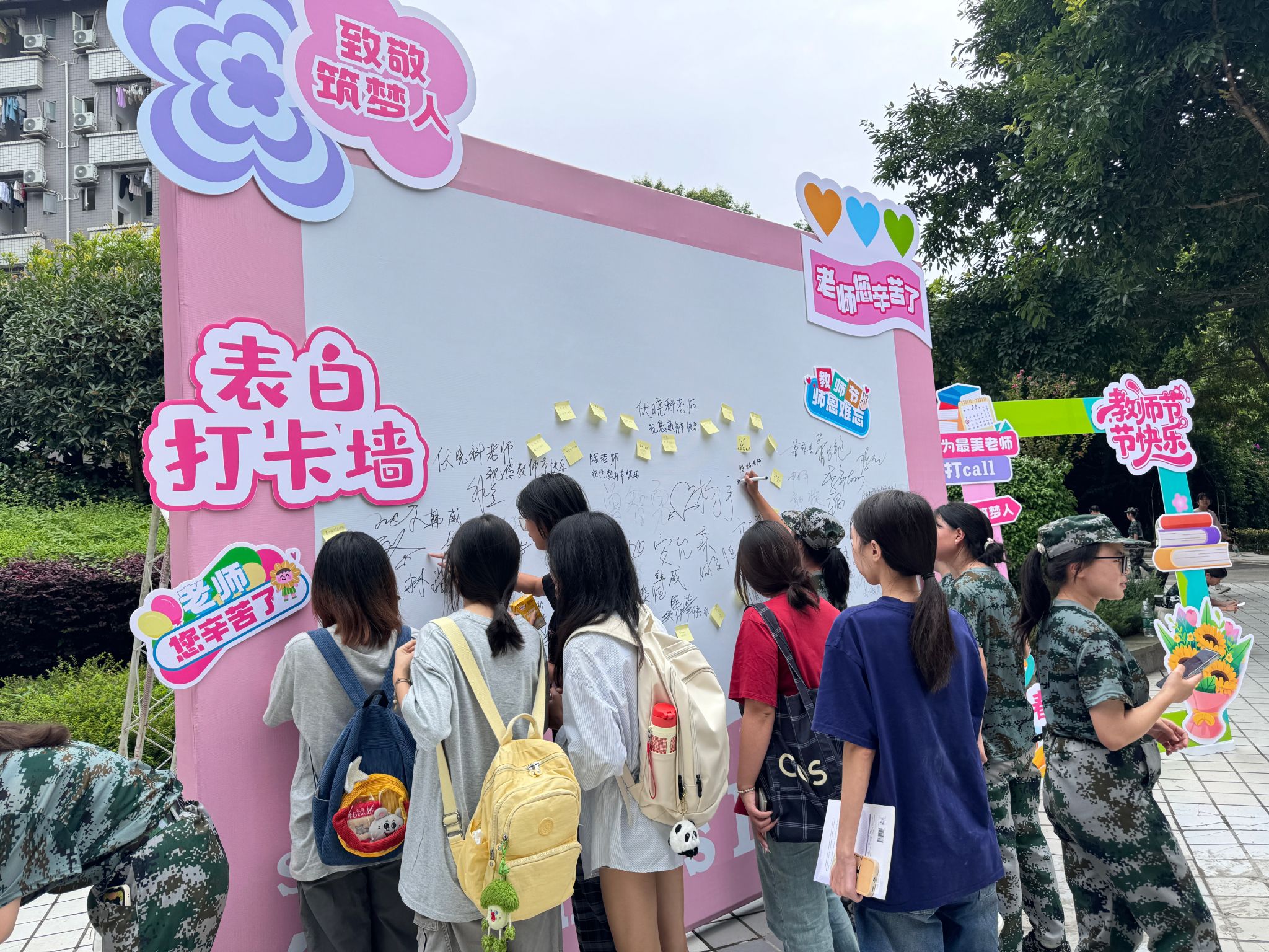 校园里,“暖心表白墙”成为一道温馨的风景,同学们纷纷在便利贴上写下对老师的感激与祝福:“老师,您的课堂总是充满活力,让我爱上学习!”“感谢您的悉心教导,伴我成长!”一张张纸条贴满墙面,一字一句都温暖了老师们的心。