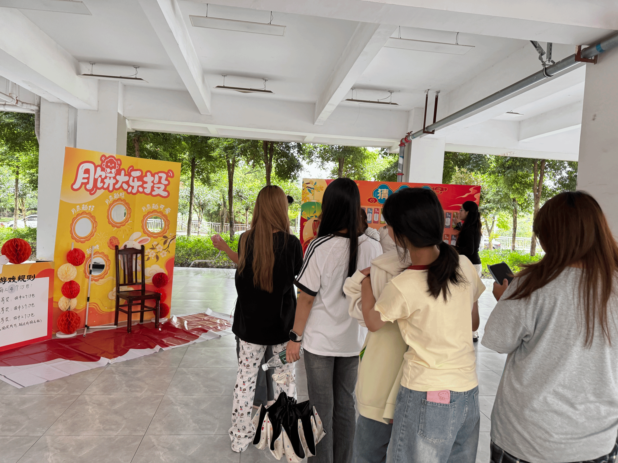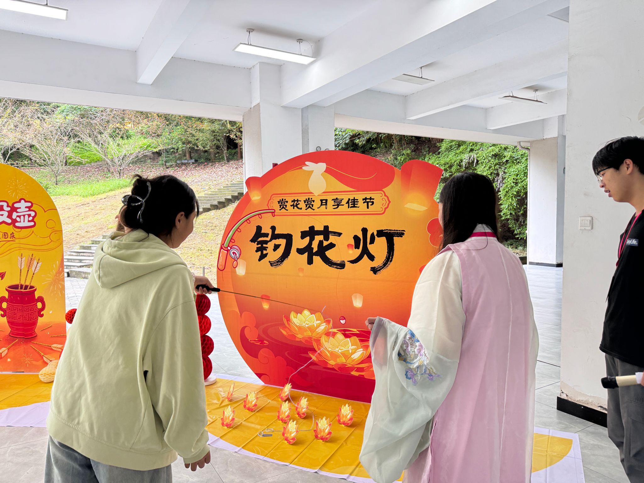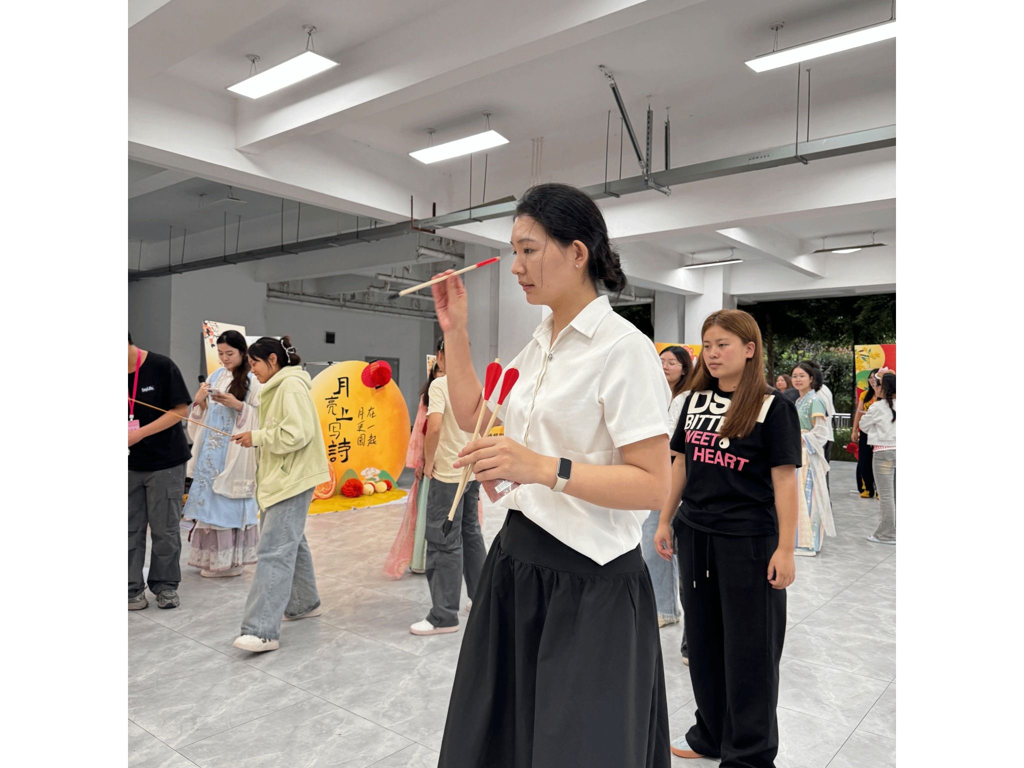 本次活动别出心裁地设置了“钓花灯”、“巧猜灯谜”、“投壶”和“趣味扔沙包”四个互动体验区,每个环节都巧妙融入了东坡文化元素,让参与者在欢声笑语中感受传统文化的魅力。同时在教室里也开展着一场月饼制作活动,让同学们感受不一样的中秋氛围。