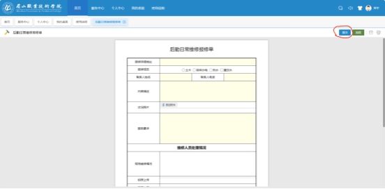 2.登陆后返回首页,点击“后勤日常维修报修单”(红圈处)