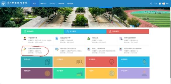 1.打开网址“https://wbdt.msvtc.net”,登陆眉山职业技术学院网上办事大厅(点击下图红圈处)。
