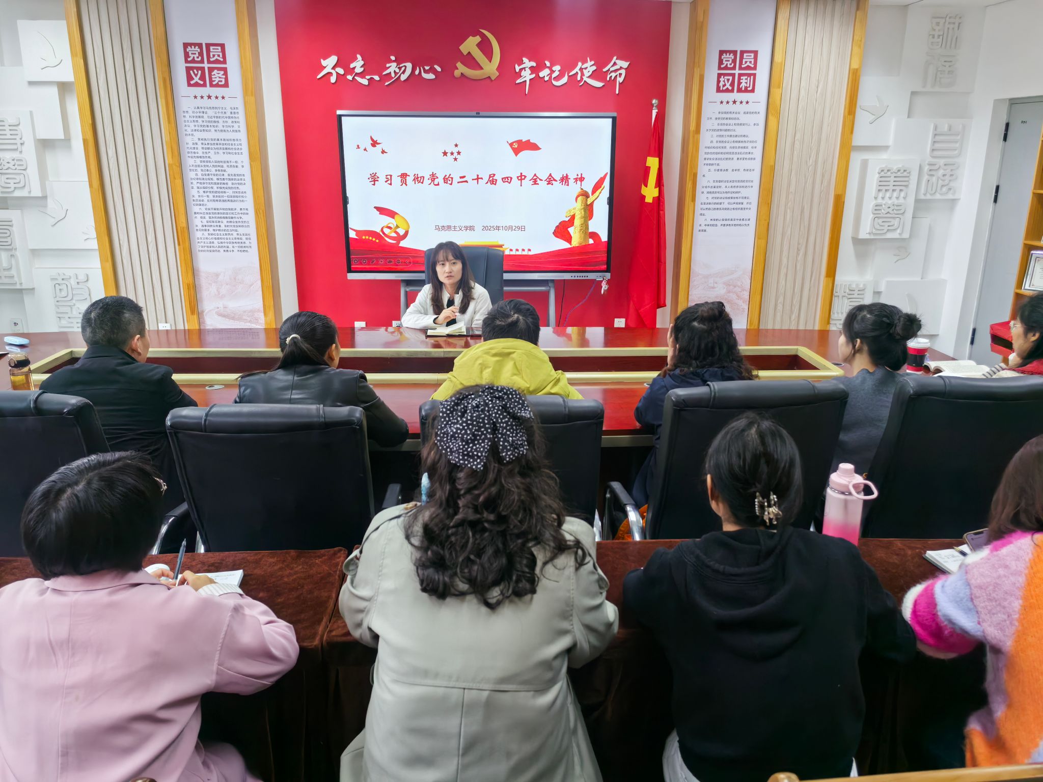 为深入学习贯彻落实党的二十届四中全会精神,推动全会精神融入思政课教育教学和理论研究,10月30日,马克思主义学院在第七教学楼303召开学习贯彻党的二十届四中全会精神专题学习会。会议由马克思主义学院党总支副书记、副院长熊祥梅主持。