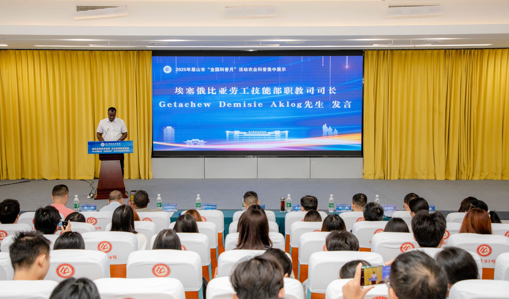 为深入贯彻习近平总书记关于科技创新与科学普及的重要论述,落实《中华人民共和国科学技术普及法》相关要求,推动科普事业与科技创新协同发展,服务乡村振兴战略和农业现代化。9月22日,以“提升全民科学素质,夯实科技强国基础”为主题的眉山市“全国科普月”农业科普集中展示活动在学校招生就业中心成功举办。埃塞俄比亚劳工技能部职教司司长Getachew Demisie Aklog,隆平高科国际培训学院副院长、高级农艺师翁永,市科技局副局长吴洪波,学校党委委员、副校长丁盛出席活动,科技处处长刘聃,现代农业学院副院长杨俊、王美,相关专业教师及24级现代农业技术专业、园艺专业学生参加。