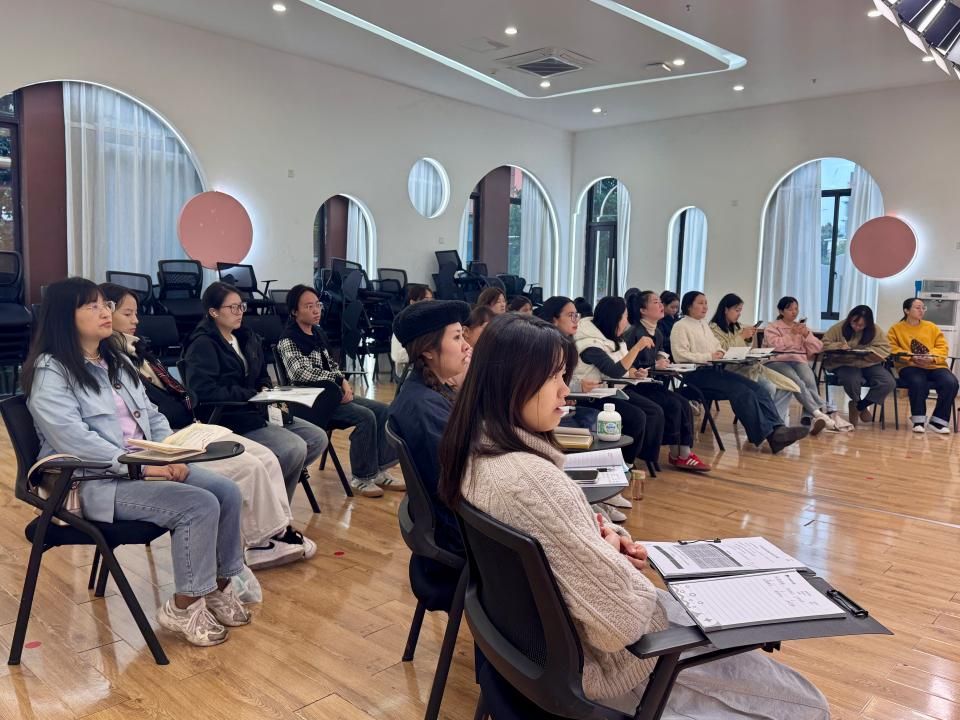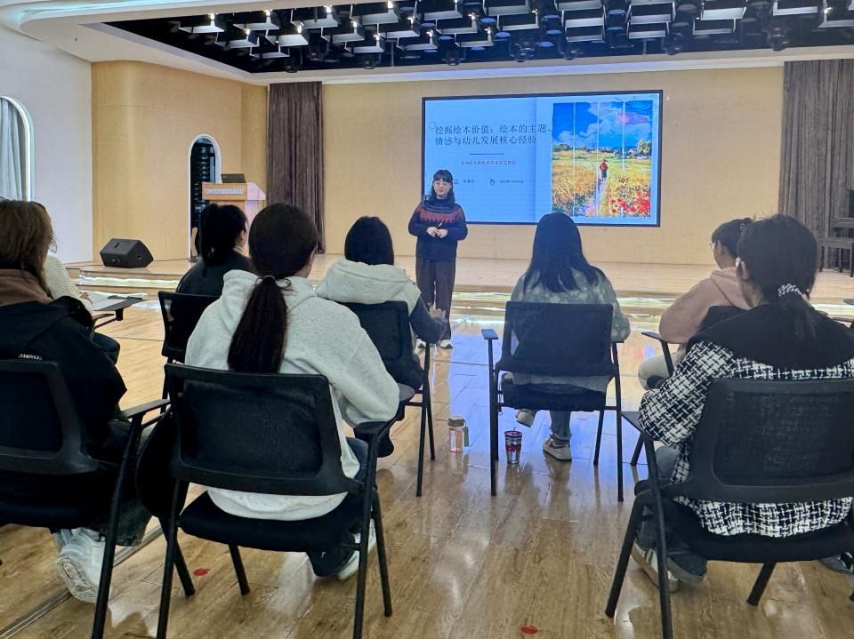 10月27日,苏洵幼儿园在多功能厅举办大班组语言工作坊,教科室副主任彭真珍以《挖掘绘本价值:绘本的主题、情感与幼儿发展的核心价值》为题主讲,大班组教师、该校2024级学前教育专业10名见习生及带队教师赵丽君共同参与。