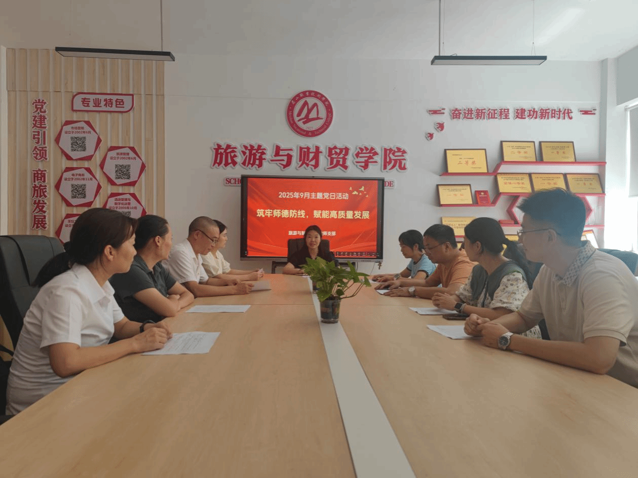 9月9日,旅游与财贸学院教师党支部在2212会议室开展九月主题党日活动,围绕“筑牢师德防线,赋能高质量发展”进行学习研讨,支部全体党员参加。