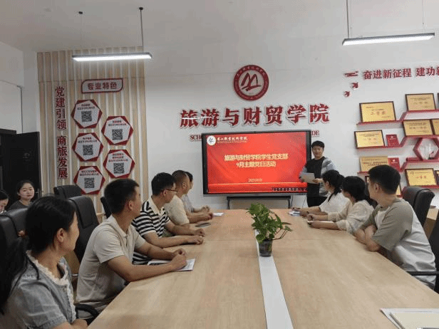 9月9日,旅游与财贸学院学生党支部在2212会议室开展九月主题党日活动,围绕“传承师者优良作风,坚守教育初心使命”进行专题学习,支部全体党员参加活动。