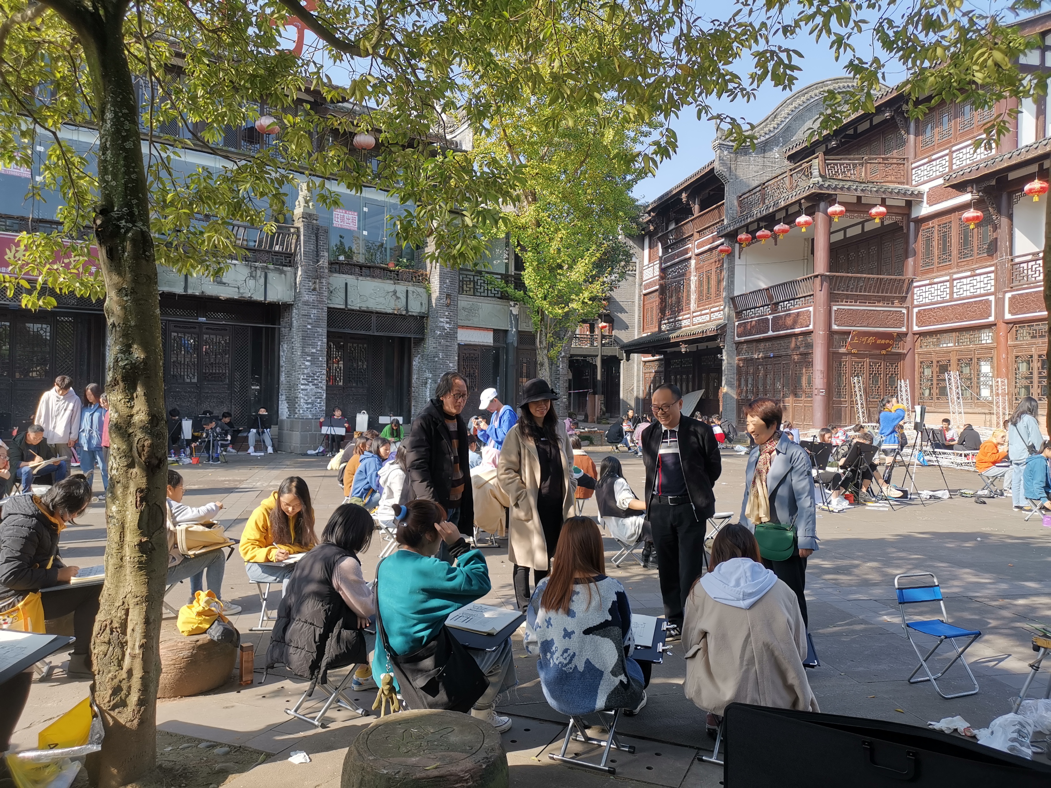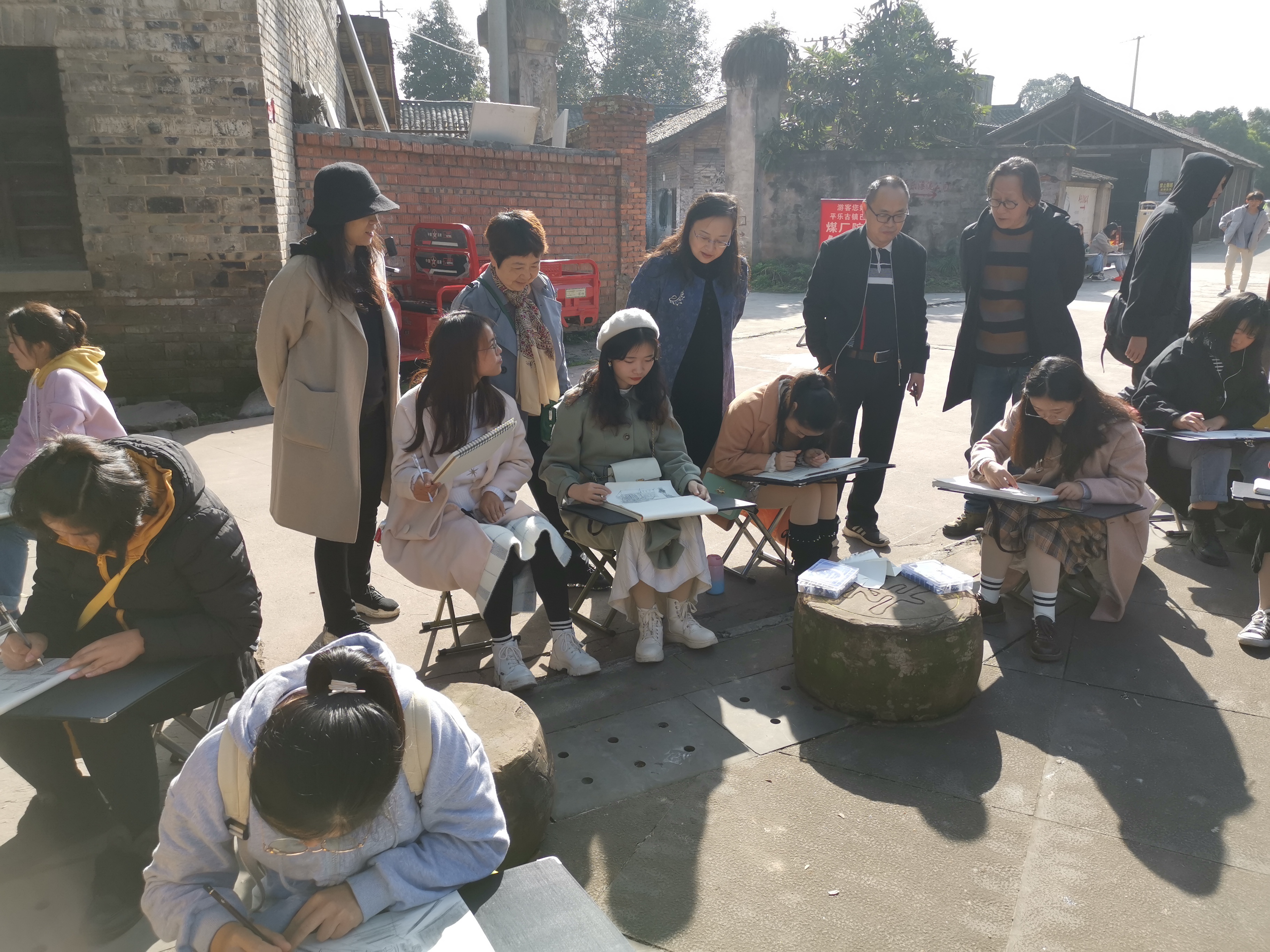 11月14日,学校副院级领导刘晓琼、教务处长罗树明、文化艺术系主任刘桦等一行4人到邛崃市平乐古镇检查校外写生综合实训。