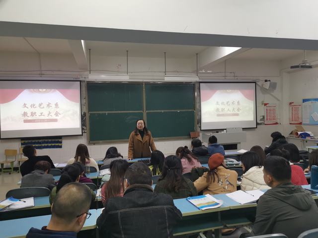11月20日,文化艺术系在2102组织召开“一师两查”巡课情况点评暨全系教职工大会,会议由文化艺术系主任廖颖主持,文化艺术系主任刘桦出席并讲话,思政文化党总支书记付进平参加。