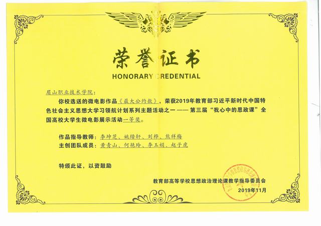 经层层筛选,省教育厅评审,推荐我校微电影在内的7部一等将作品参加“我心中的思政课”全国高校学生微电影展示活动,最终荣获一等奖佳绩。
