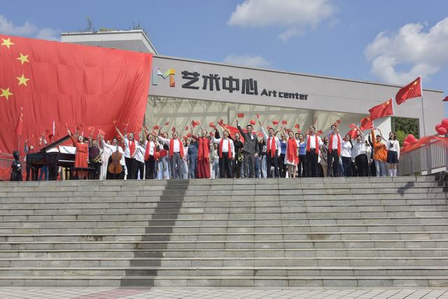 9月25日,思政教学部联合学校多部门在学校艺术中心外举行了一场爱国快闪活动,庆祝中华人民共和国成立70周年。