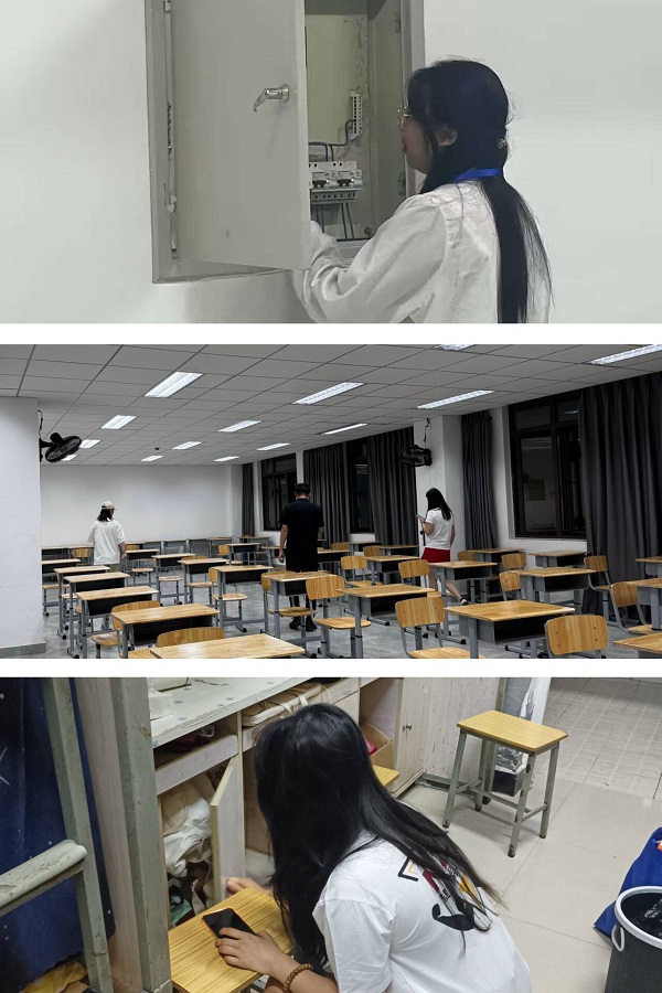 本次检查工作针对寝室的用电安全及防火问题,排查学生宿舍的安全隐患。检查过程中,重点关注了学生宿舍违规使用大功率电器、私拉乱接电线、抽烟饮酒等违规行为。同时也对宿舍的卫生状况进行了全面、细致的检查,学生干部认真查看了地面、墙壁、门窗、桌椅等各个方面的卫生情况,对发现的问题进行了详细记录,并及时通知相关宿舍进行整改。