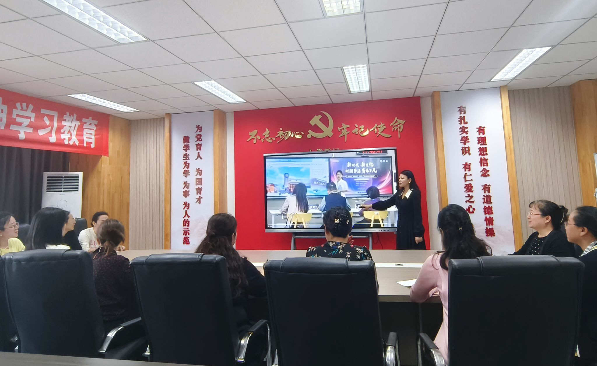 2025 年 10 月 15 日英语教研室全体老师齐聚7309党员活动室,开展了一场听取李玲老师以“高教社杯”用外语讲中国故事短视频大赛全国总决赛经验交流为主题的教研活动。该活动旨在通过李玲老师的获奖经验交流,深化英语教学改革与创新人才培养。