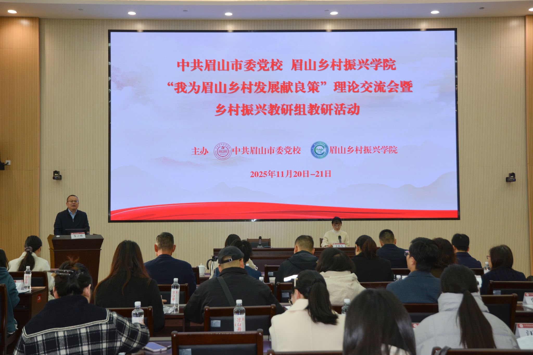 2025年11月21日,中共眉山市委党校、眉山乡村振兴学院主办的“我为眉山乡村发展献良策”理论交流会暨乡村振兴教研组教研会议在眉山市委党校举行,会议由中共眉山市委党校副校长向健民主持。来自全市多领域的专家、教师代表齐聚一堂,共同为乡村振兴和农业产业高质量发展建言献策。