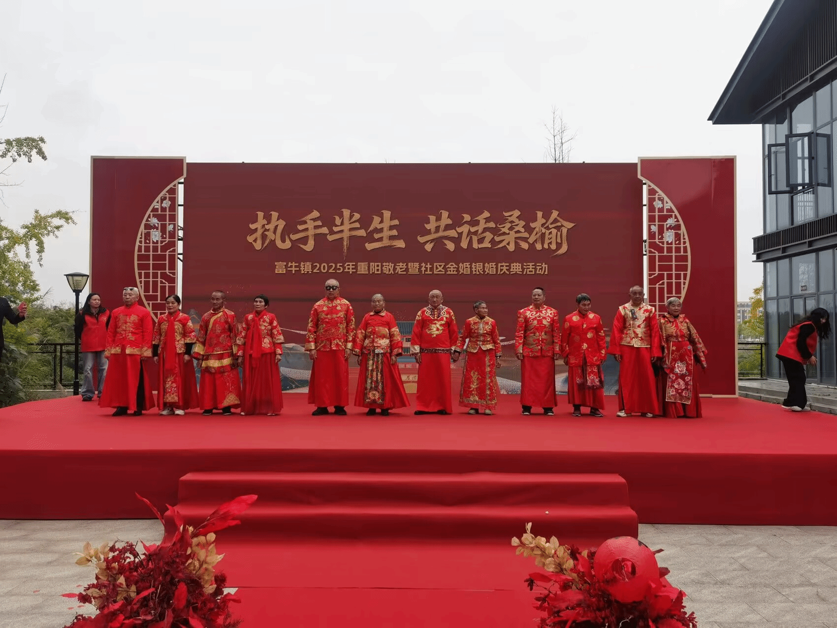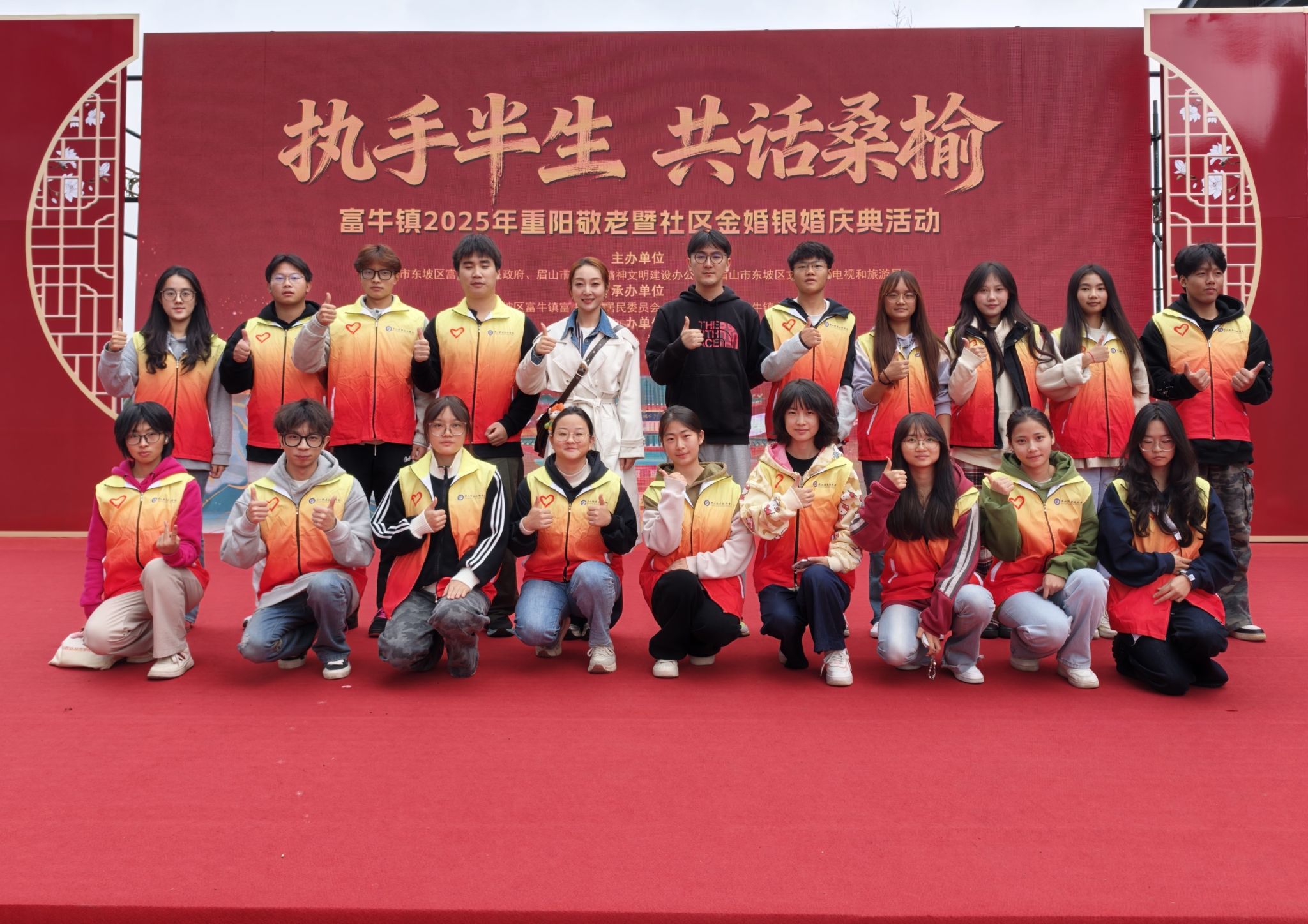 10月28日,学校团委携手富牛镇政府,在“川大里”特色街区二期广场温情启幕“执手半生 共话桑榆”重阳节敬老活动暨金婚银婚庆典。近700名社区长者欢聚一堂,在欢声笑语中共庆佳节,让尊老敬老的传统风尚在秋日暖阳中愈发浓郁。