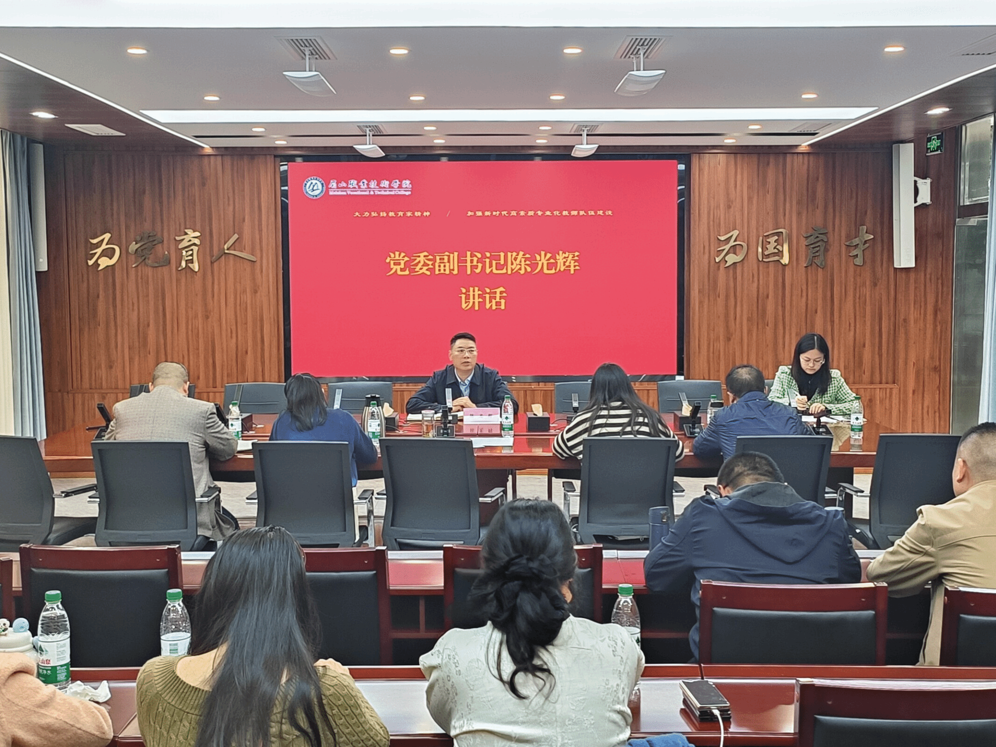 10月29日,学校在行政楼一楼会议室组织召开第二批校级工作室(平台)中期建设情况汇报会。党委副书记陈光辉出席会议并讲话。