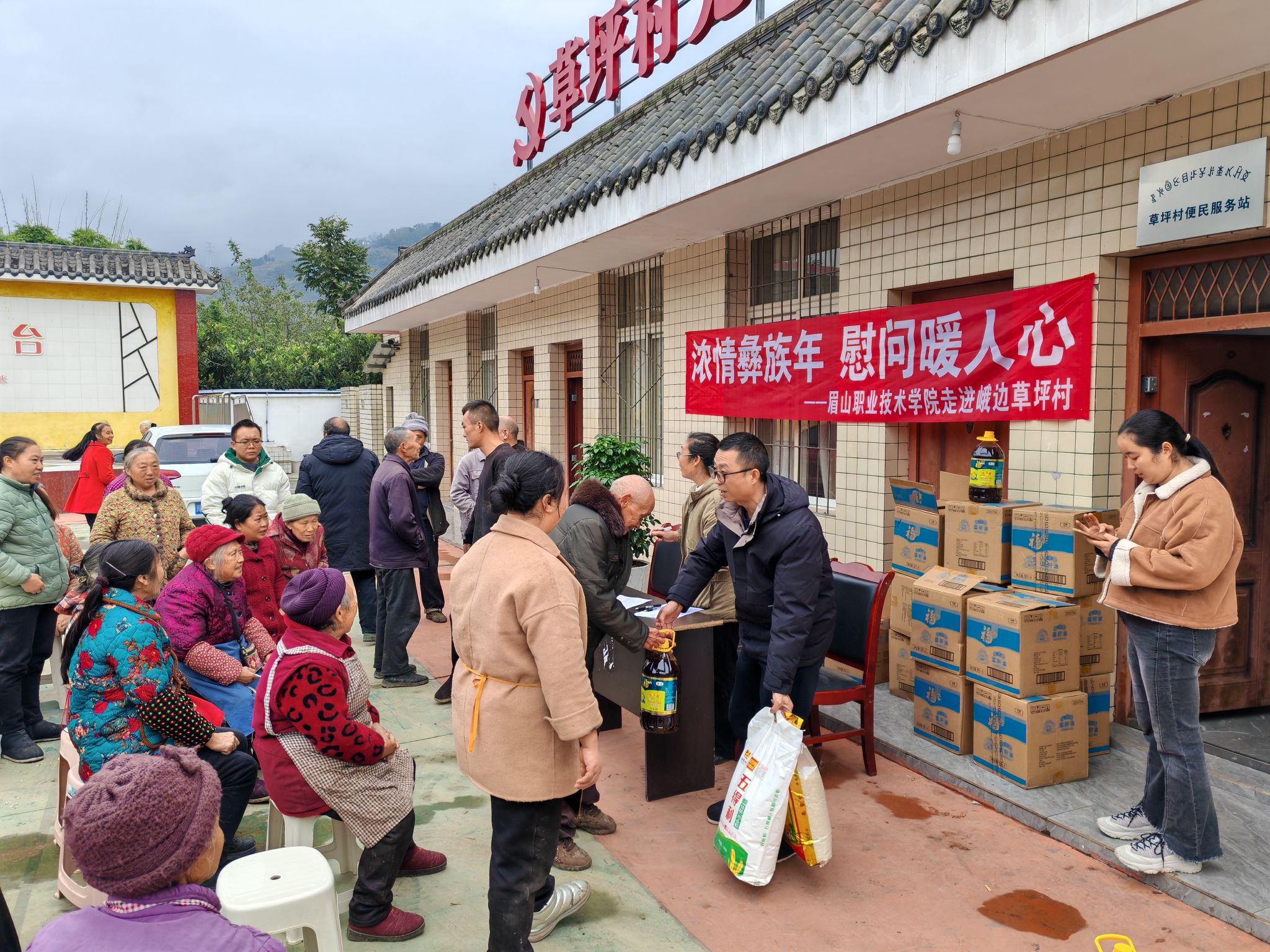彝历新年将至,情暖小凉山。11月14日,眉山职业技术学院在峨边彝族自治县草坪村有序组织开展了“浓情彝族年 慰问暖人心”慰问活动,向全村194户村民发放了一份包含米、油、面的暖心礼包,确保全体村民都能欢度一个祥和、丰盛的新年。