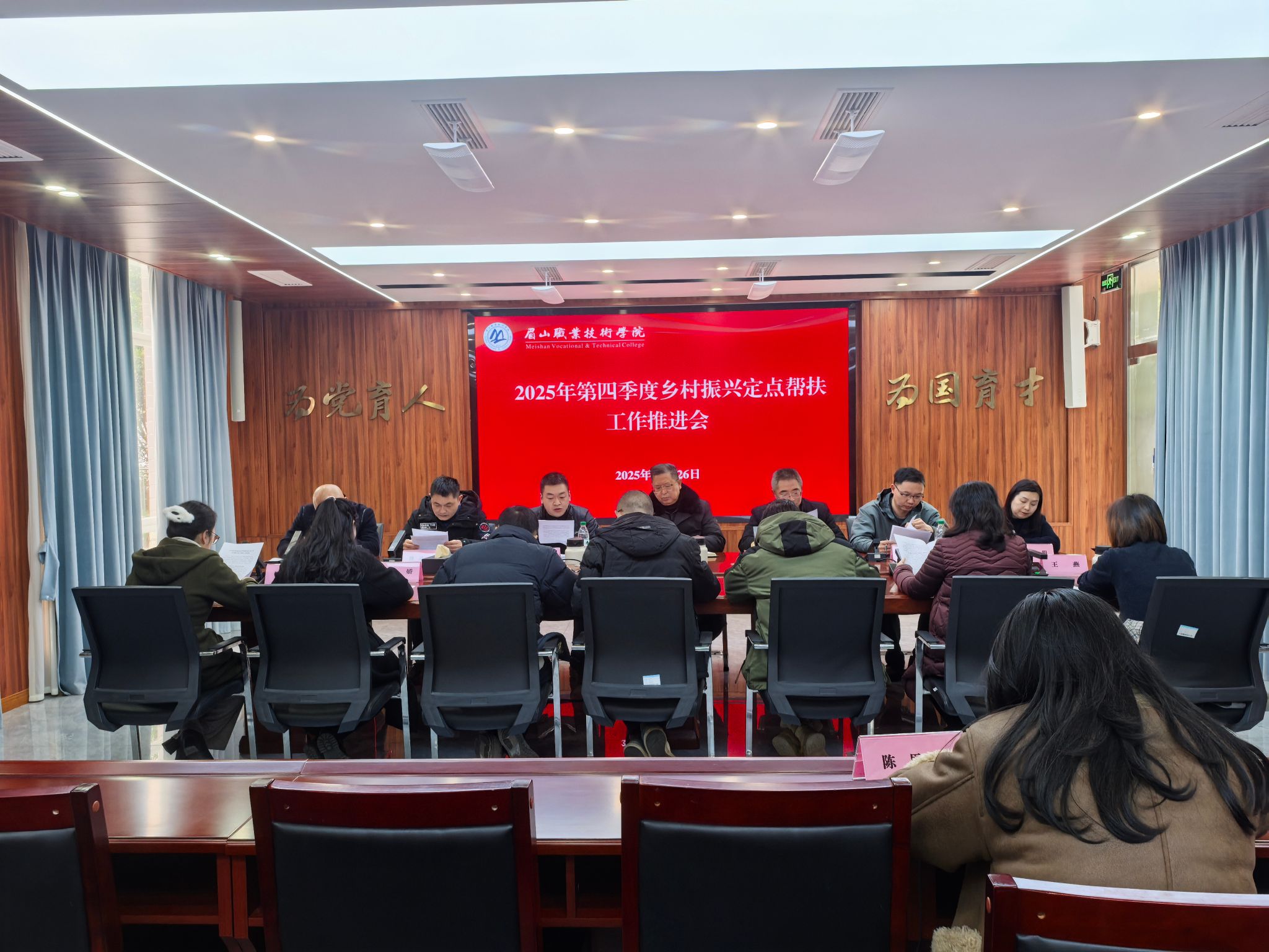 会议要求,新的一年,各驻村干部、相关职能部门、教学单位要深入贯彻落实习近平总书记重要指示精神,按照上级统一部署要求,进一步坚定扛起乡村振兴帮扶政治责任,持续发挥学校教育、科技、人才优势,持续用力、精准施策抓好各项帮扶工作,持续为乡村全面振兴贡献眉职力量。要系统总结2025年帮扶工作,抓好亮点挖掘和资料收集等工作,全面展示帮扶成效和干部风采。要科学谋划制定2026年帮扶计划,在助力乡村产业、人才、文化、生态、组织振兴上全面发力,不断提升帮扶工作质效。要保持毫不懈怠的精神状态和一往无前的奋斗姿态,一茬接着一茬干、一锤接着一锤敲,以扎实作风和过硬能力推动2026年工作再上新台阶。