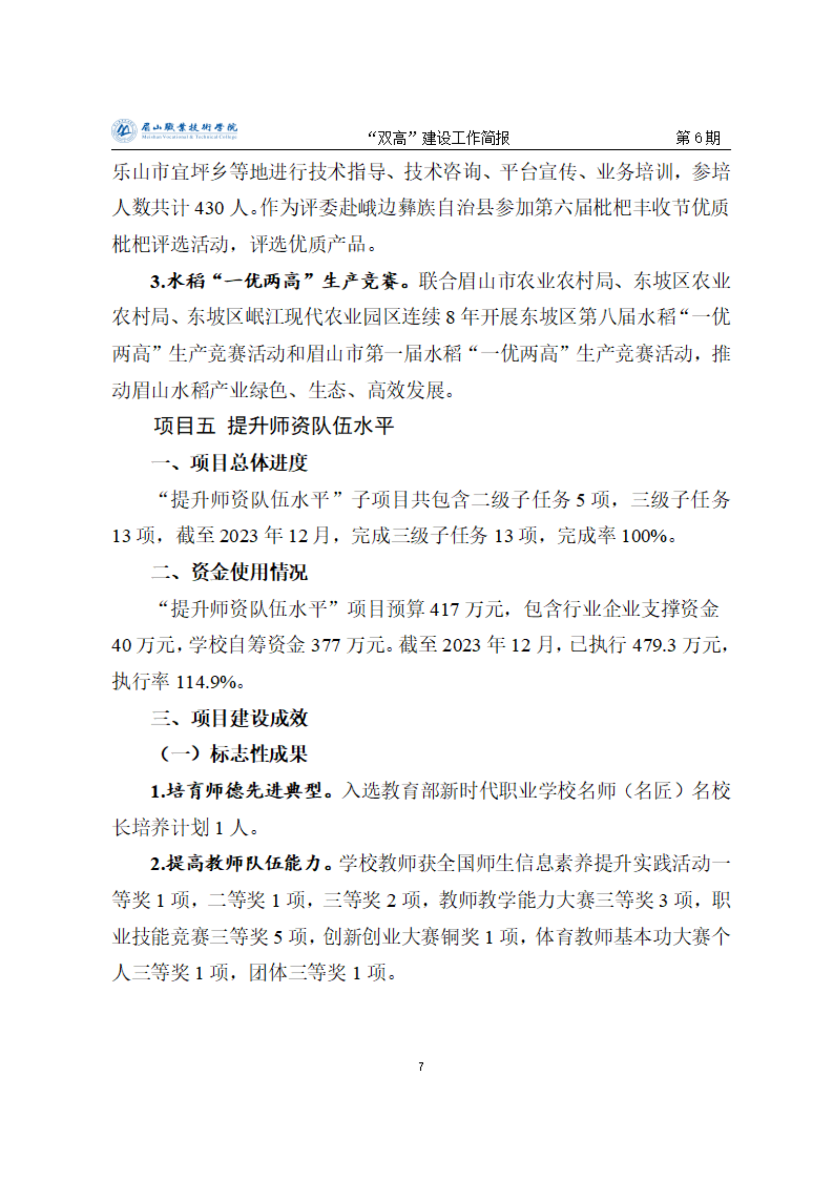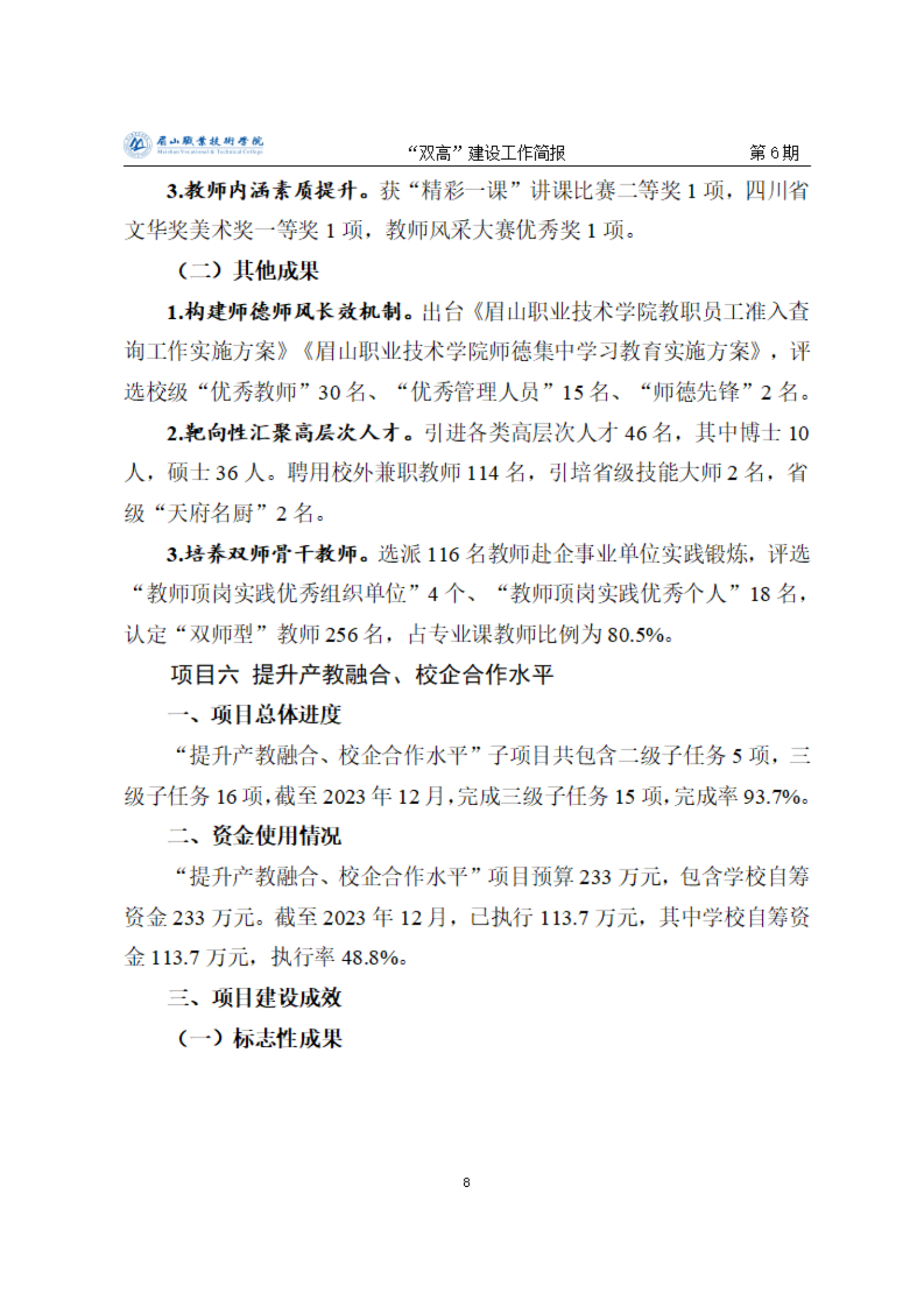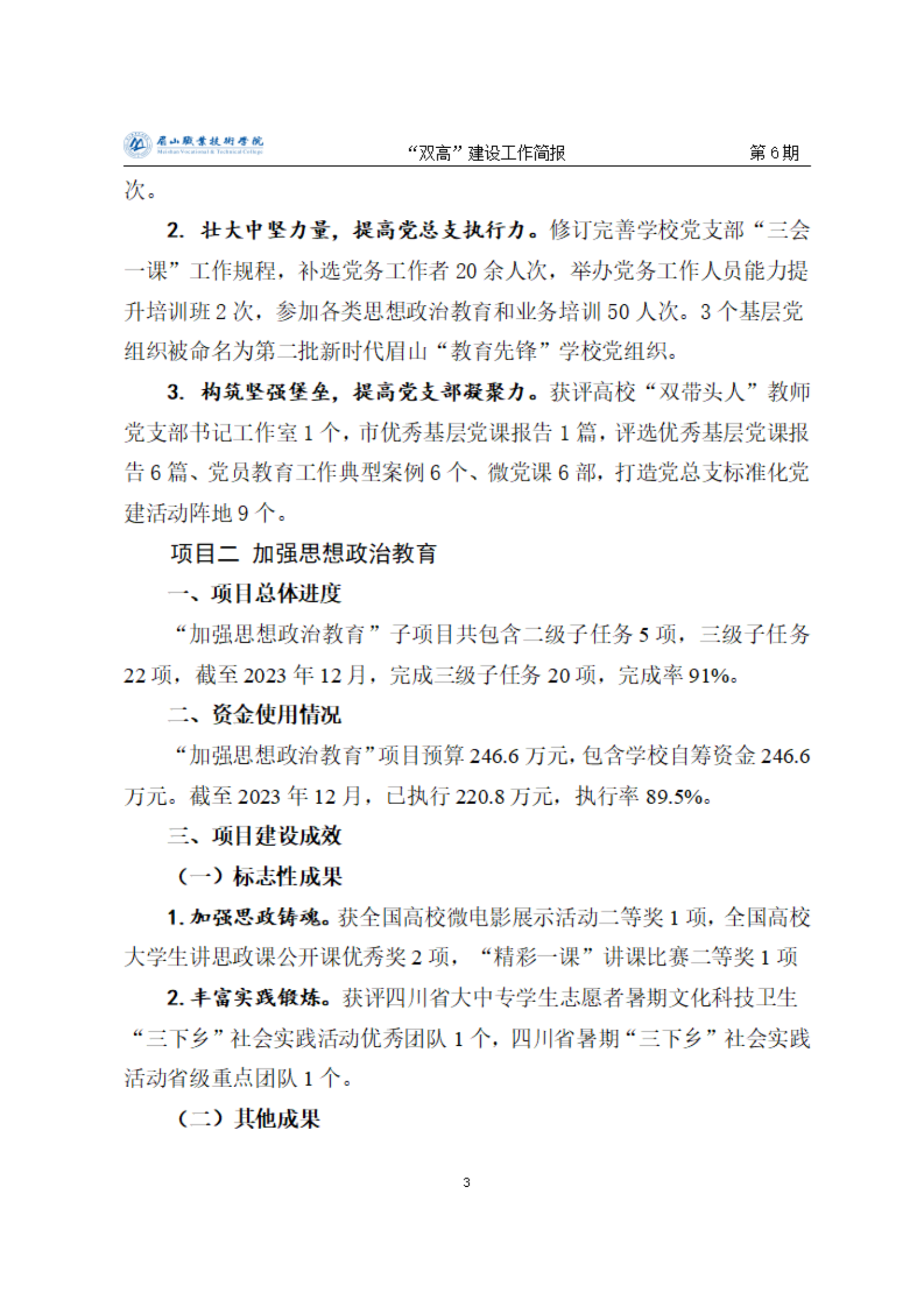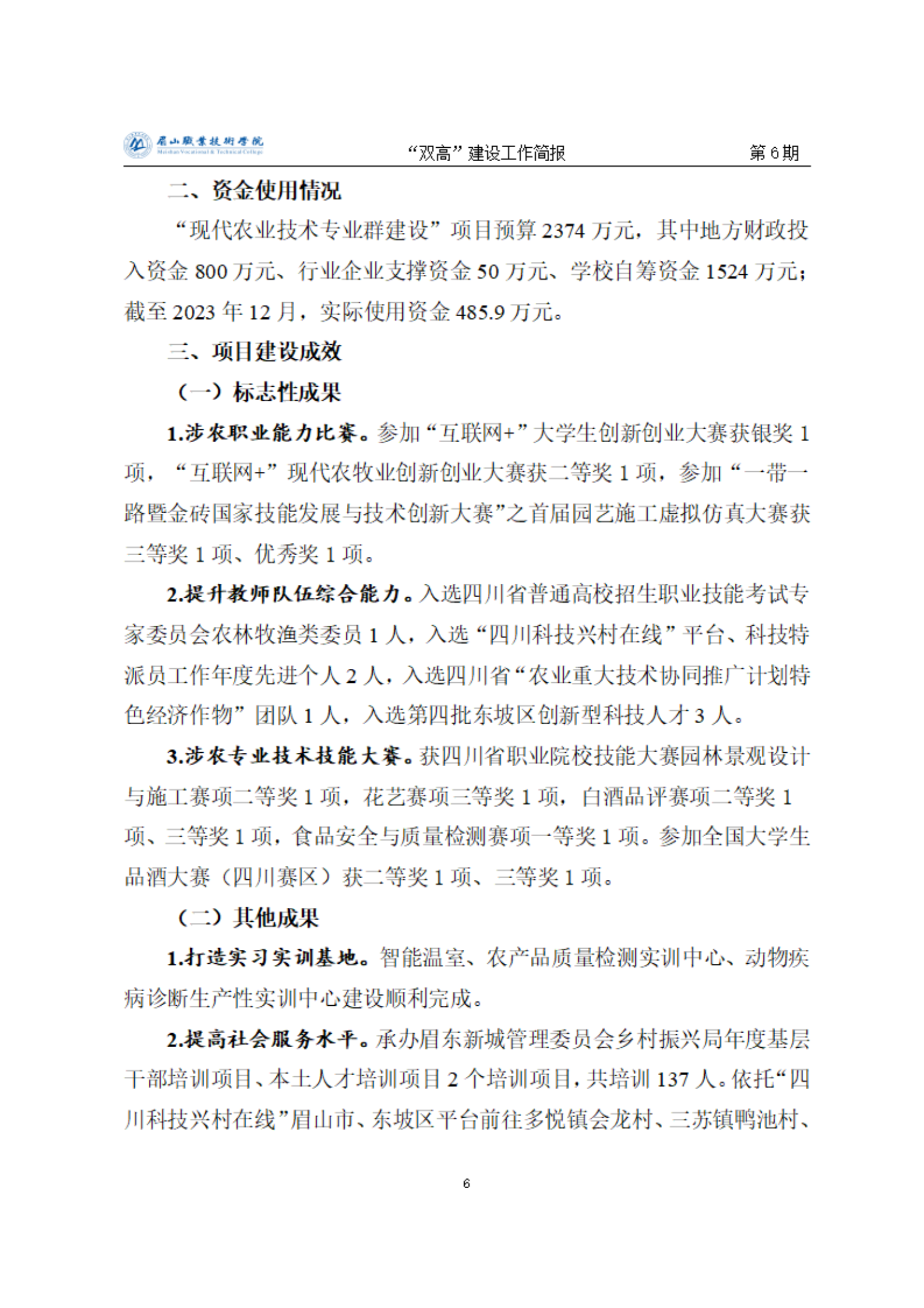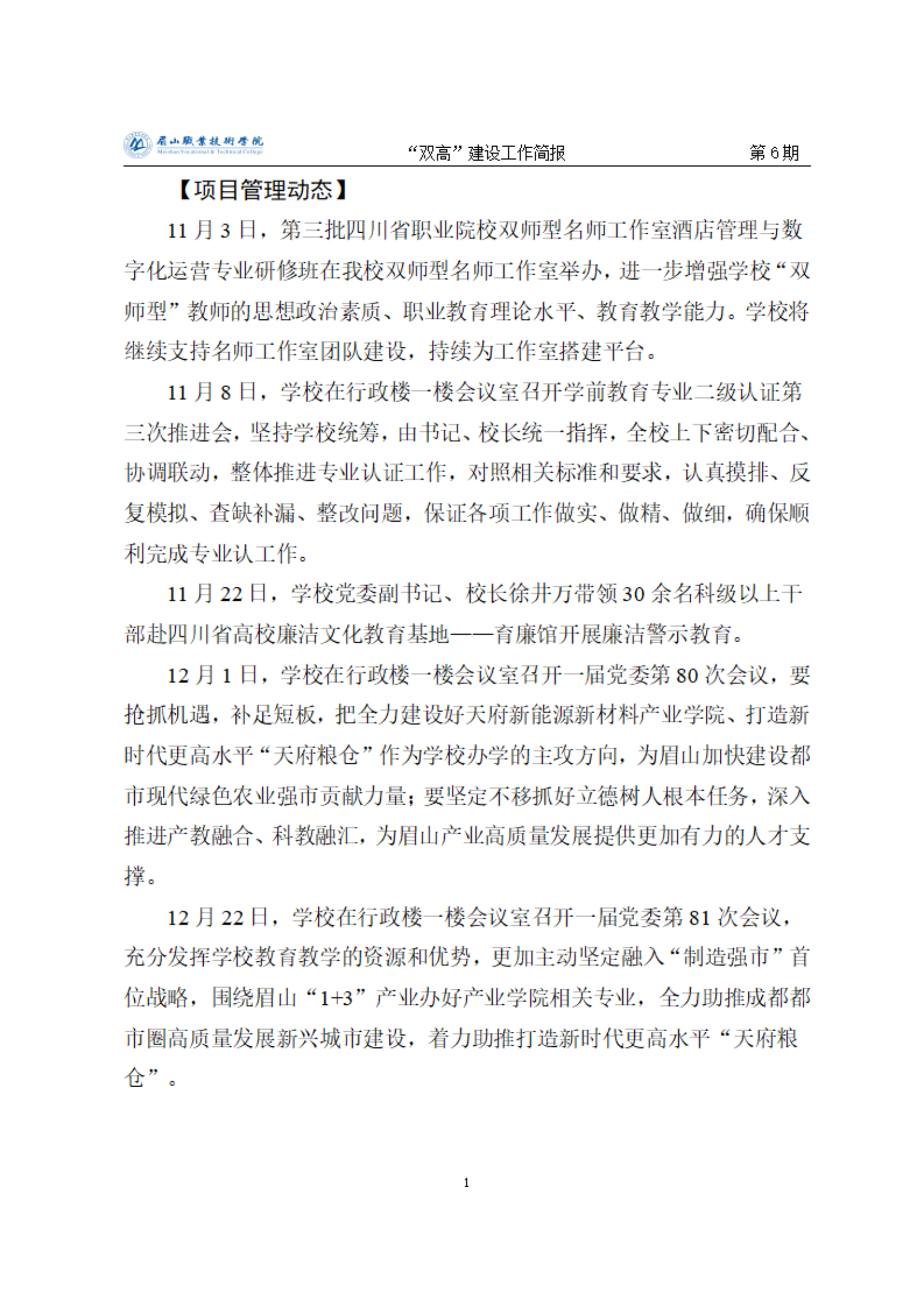 眉山职业技术学院省级“双高”建设工作简报第6期