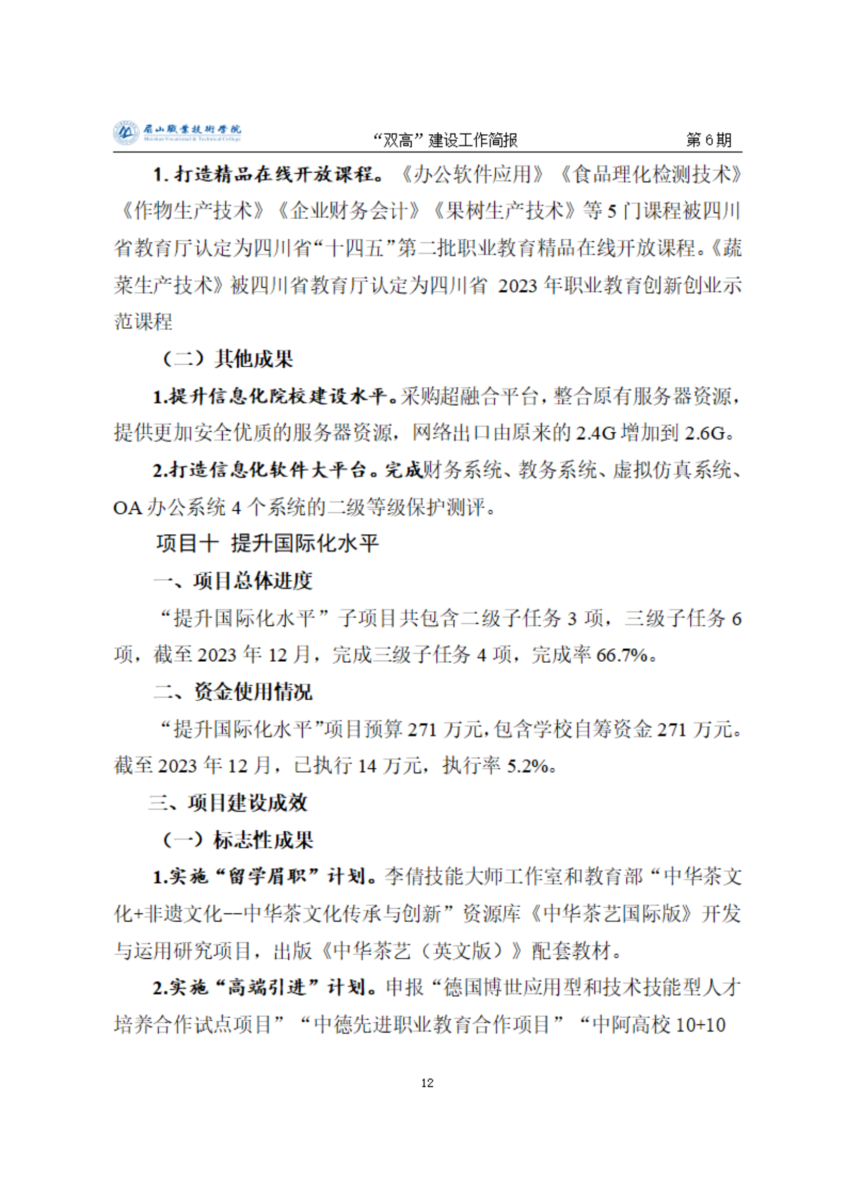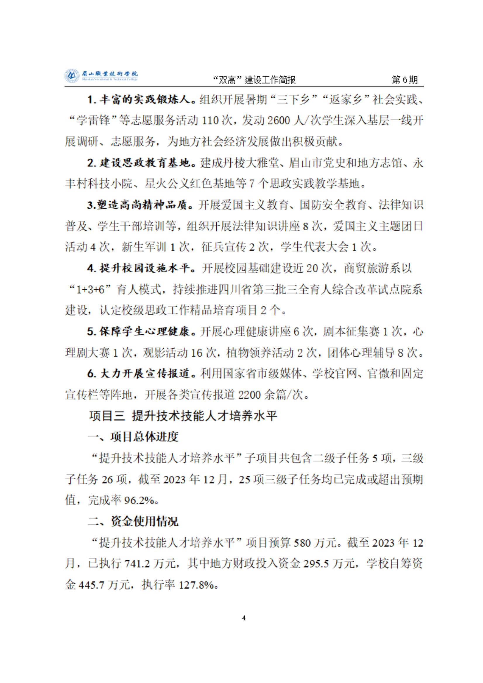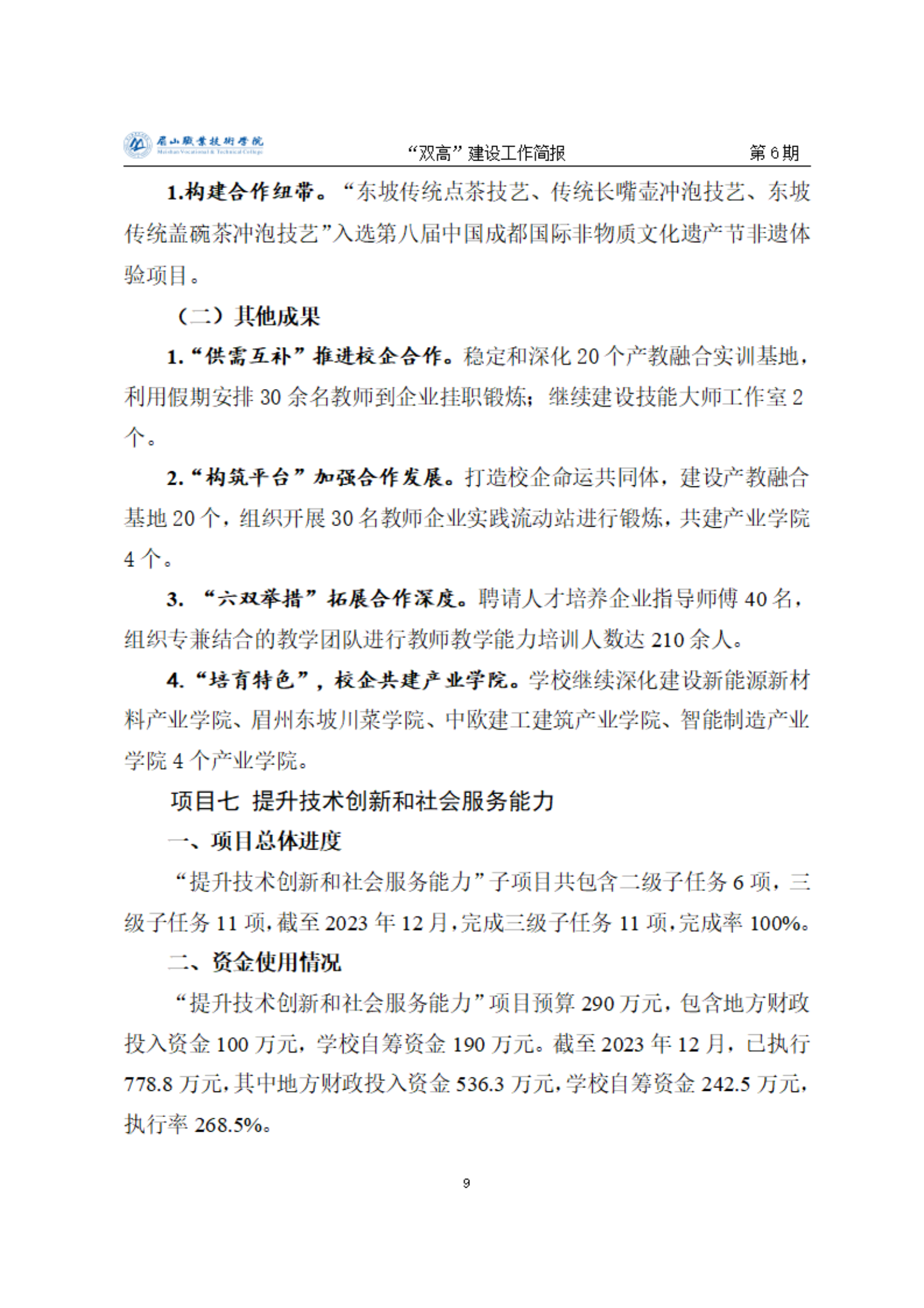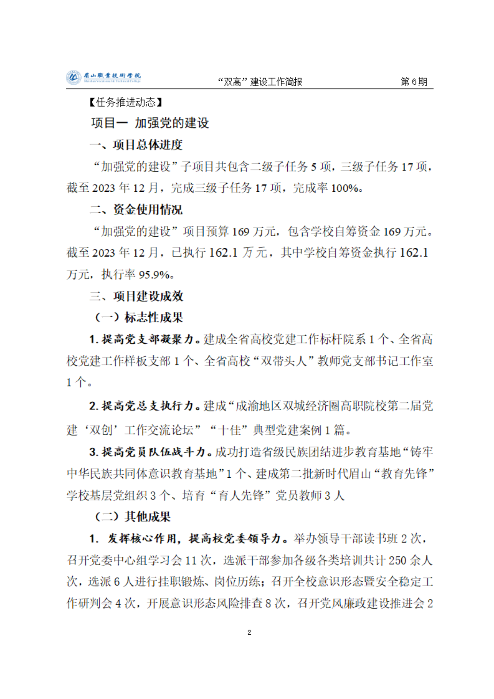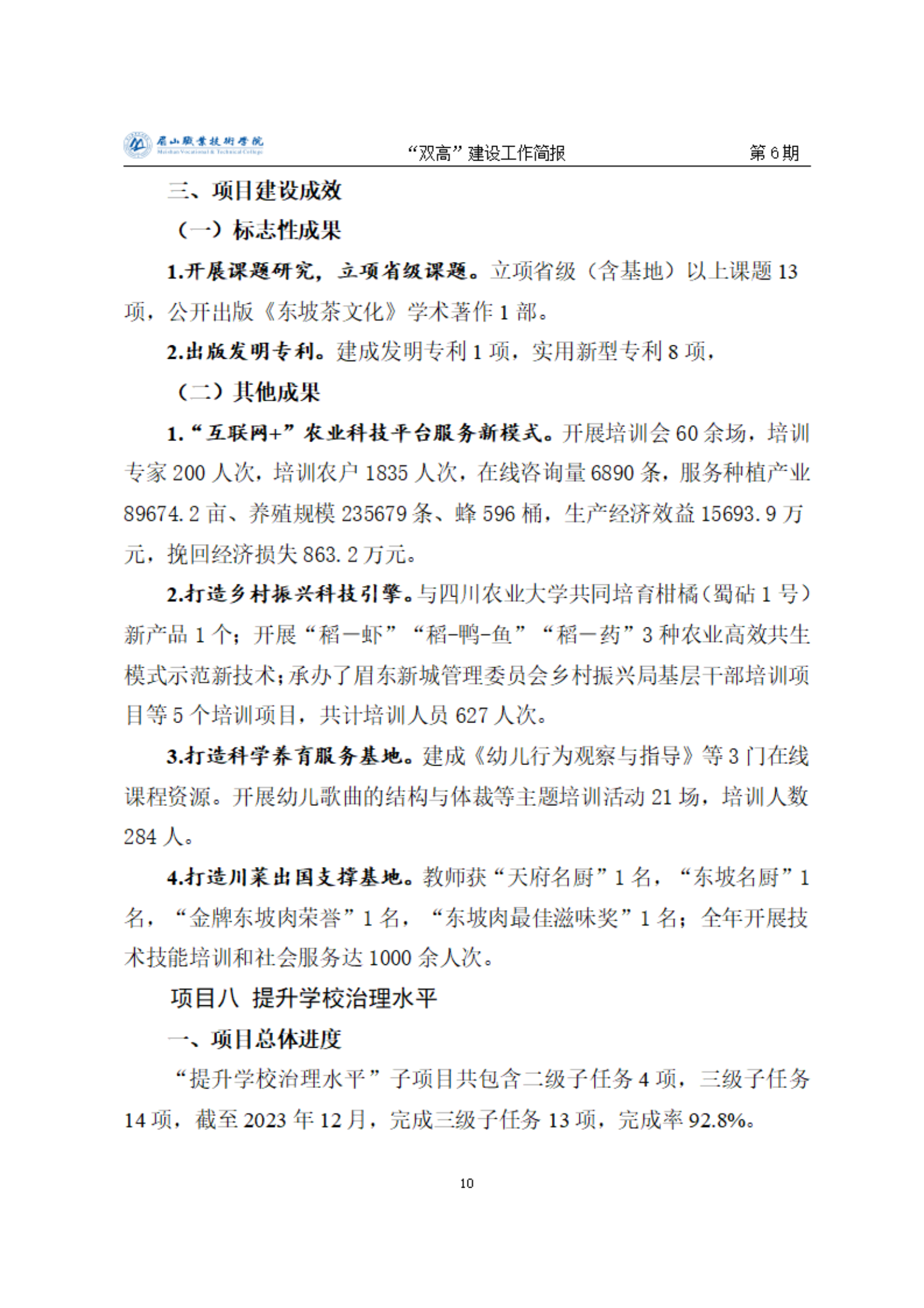 眉山职业技术学院省级“双高”建设工作简报第6期
