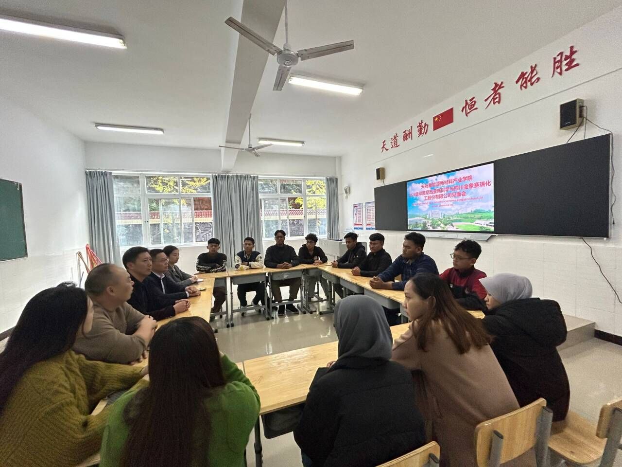 11月5日,学校开展天府新能源新材料产业学院2024年印度尼西亚新同学与四川金象赛瑞化工股份有限公司见面会。见面会由金象赛瑞化工股份有限公司人力资源部部长郭利红主持。