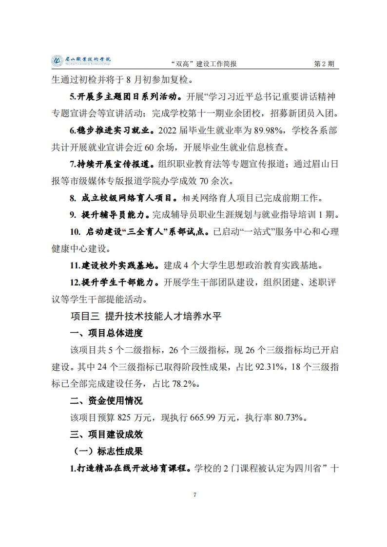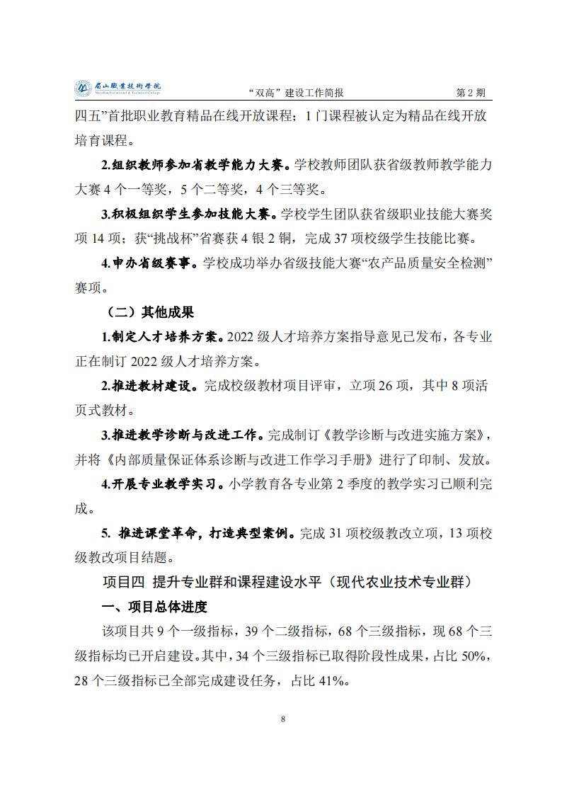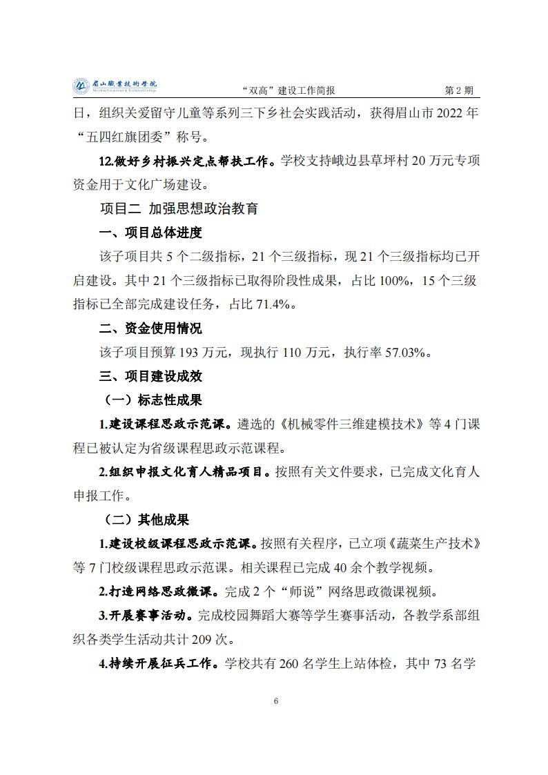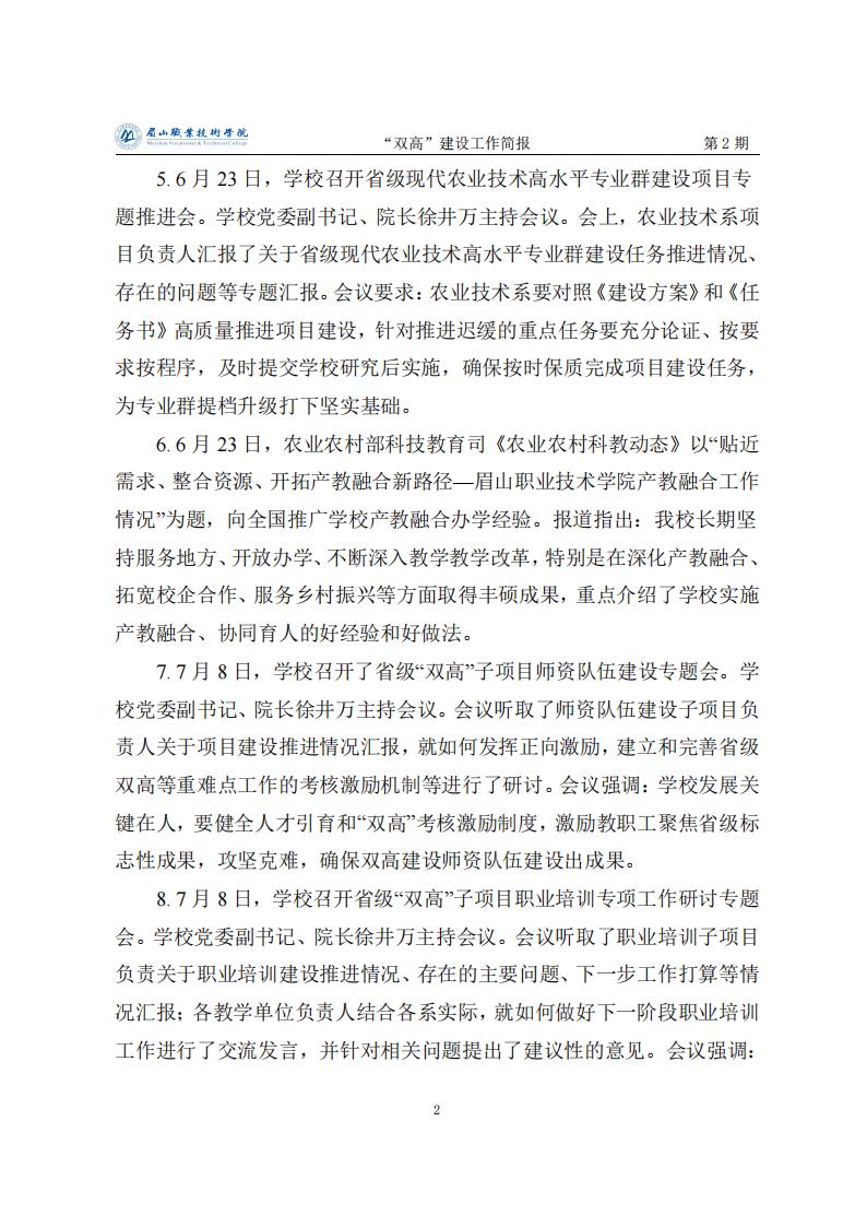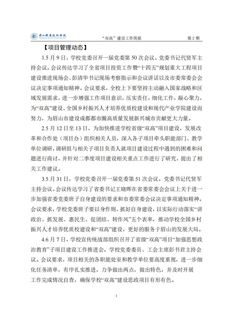 眉山职业技术学院省级“双高”建设工作简报第2期