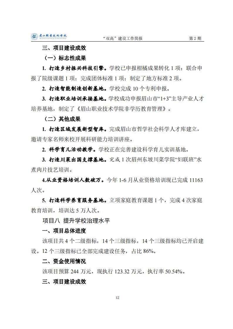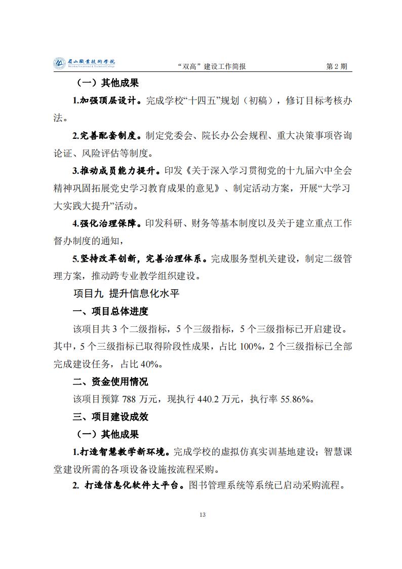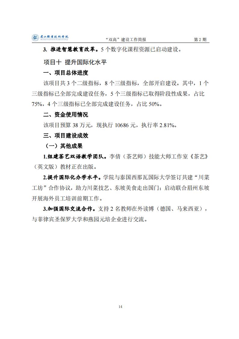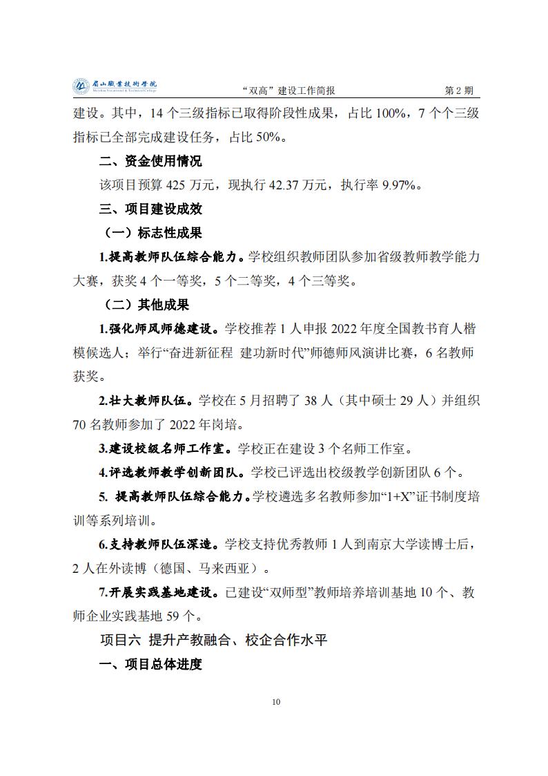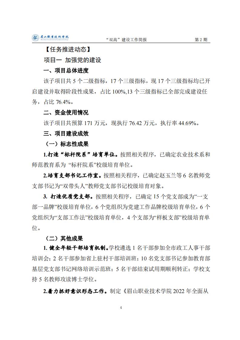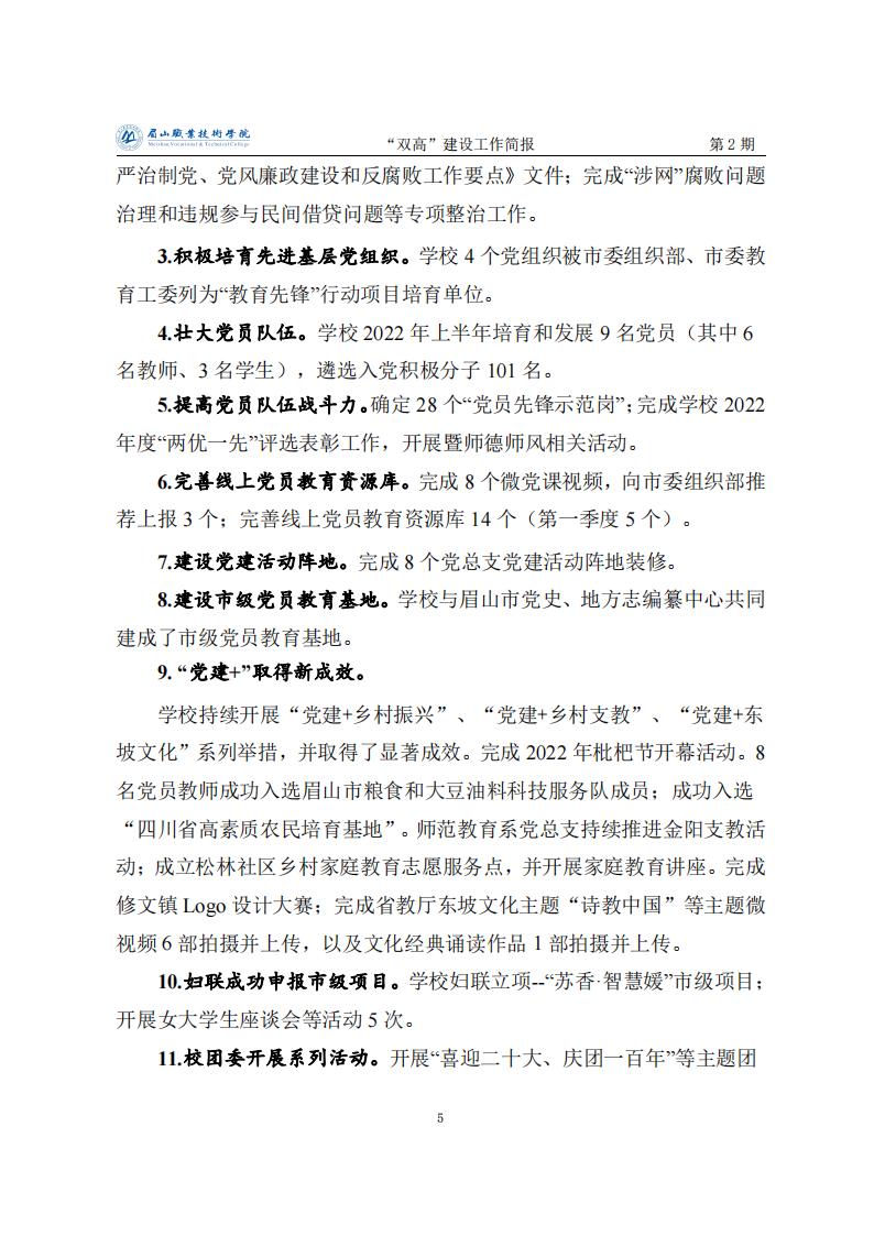 眉山职业技术学院省级“双高”建设工作简报第2期