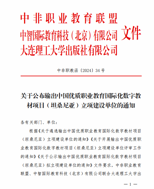 项目将以坦桑尼亚国家为试点地区,通过遴选中国职业院校优质教学资源,开发符合中资企业国际产能合作需求和坦桑尼亚行业发展计划的国际化数字教材,由坦桑尼亚国家职业教育委员会和大连理工大学出版社共同出版,并上传至坦桑尼亚国家职业教育数字化资源管理平台,作为坦桑尼亚院校机构推荐指定书目面向“一带一路 ”沿线各国推广使用。