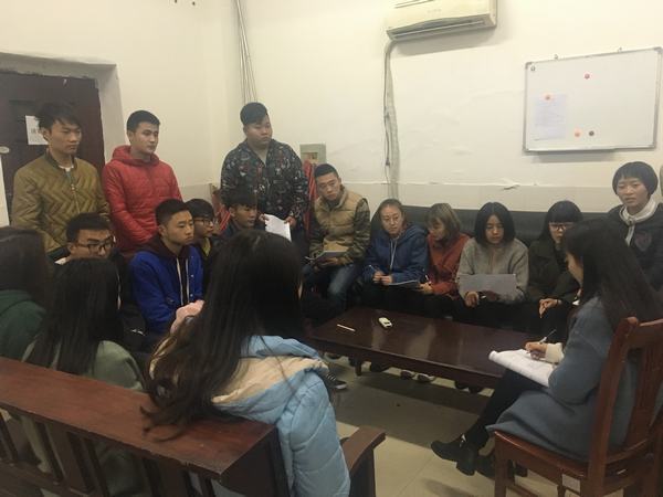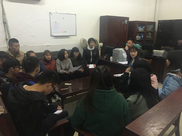 2017年3月15日晚在2415办公室,例行召开班委会。15级建筑1、2班,15级汽销班全体班委参加会议。系辅导员辜蕾蕾主持会议。