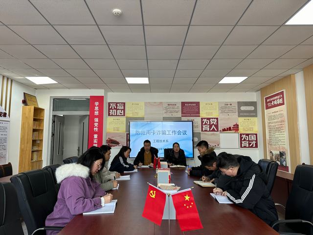 12月18日,工程技术系在第五教学楼5307会议室召开防范“两卡”诈骗工作会议,党总支副书记甘小梅主持会议。