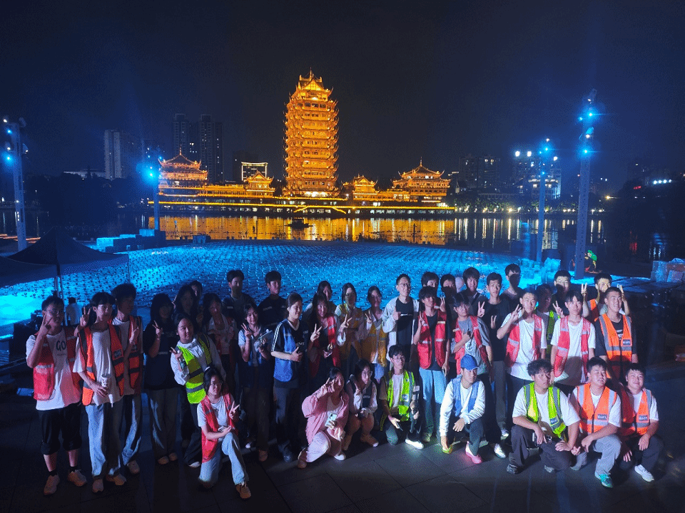 近日,智能制造学院(天府低空经济产业学院)师生团队受邀参与眉山市湿地公园大型无人机灯光秀活动,全程提供技术支持与现场服务。师生凭借扎实的专业能力与高效的团队协作,圆满完成任务,获得主办单位与合作企业的一致好评。