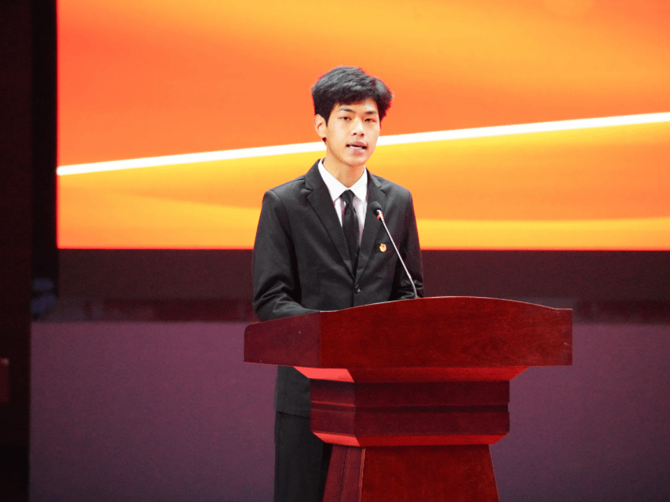 随后,新生代表胡勇智上台发言,分享校园初印象与学习决心,承诺将以勤奋钻研成长为高素质技术技能人才。