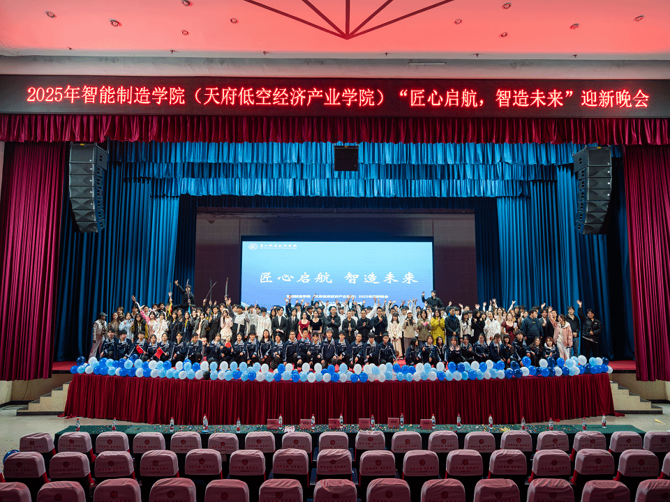 11月27日晚,智能制造学院(天府低空经济产业学院)“匠心启航,智造未来”2025级新生迎新晚会在学校艺术中心隆重举行。学校副校长丁盛、党委学生工作部部长杜宗洪、副部长孙亮受邀出席晚会,学院全体师生齐聚一堂,以歌舞传情、以欢笑聚力,为2025级新生奏响青春序曲。