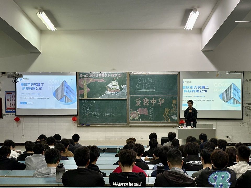为深入推进产教融合、校企协同育人,拓宽学生实习就业渠道,4月14日,智能制造学院在2202教室举办重庆天实精工科技有限公司2026年实习招募宣讲会,面向2024级机电一体化技术专业全体学生开展企业推介与岗位宣讲。