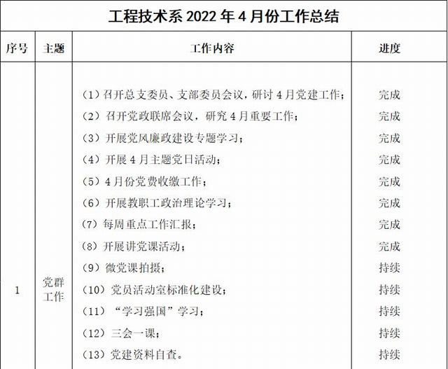 工程技术系2022年4月份工作总结