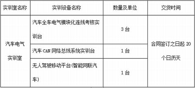 为满足我校汽车电气实训教学基本要求,需要采购一批实训设备。现采用竞争性谈判方式遴选该项目采购供应商,特邀请符合本次采购要求的供应商参加本项目的竞争性谈判。