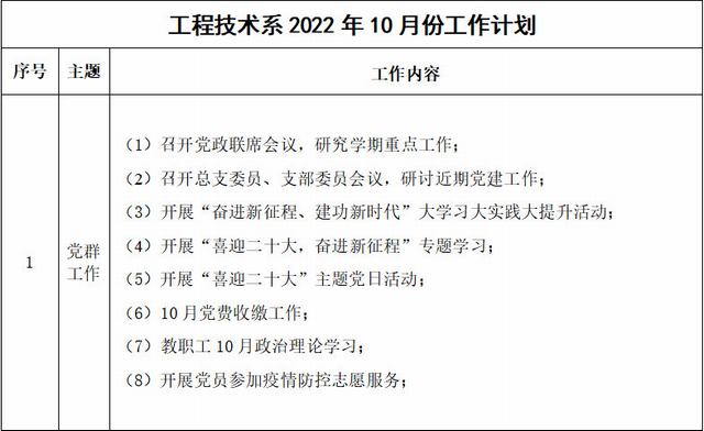 工程技术系2022年10月份工作计划
