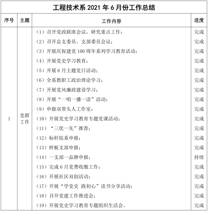 工程技术系6月工作总结