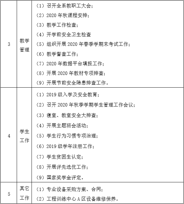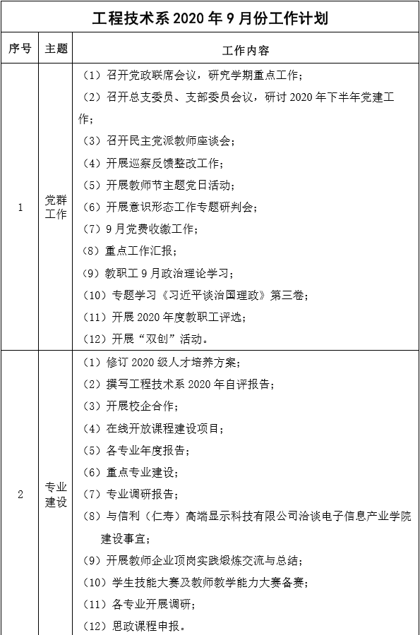 工程技术系2020年9月工作计划