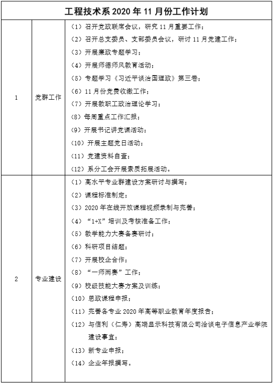 工程技术系2020年11月工作计划