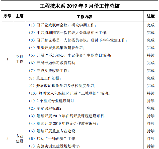 2019年9月份工作计划