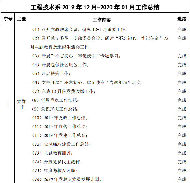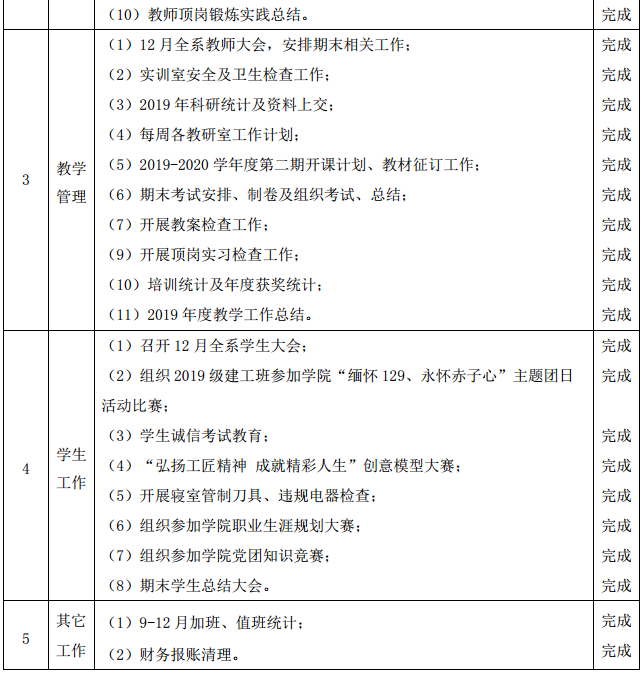 工程技术系2019年12月-2020年1月工作总结