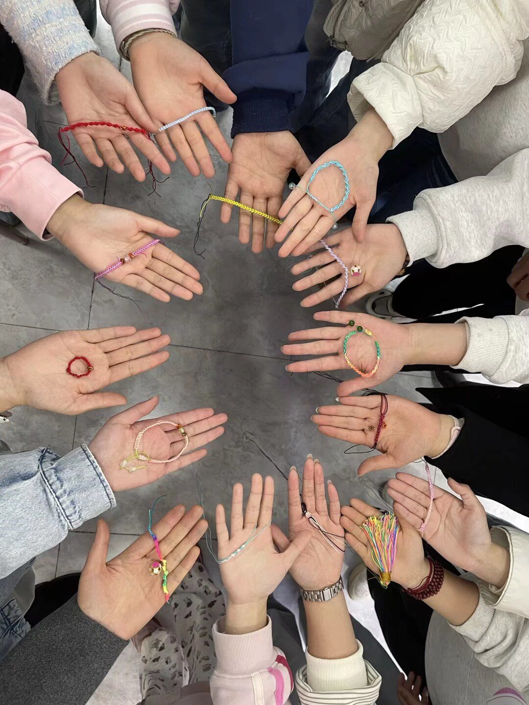 在“开织仪式”环节,同学们在手工艺小导师指导下编织“成长手环”,并写下心愿封存。活动以“人生如织,每一针都算数”为喻,拉开全年思想引领、健康赋能、创业实践等系列活动的序幕。