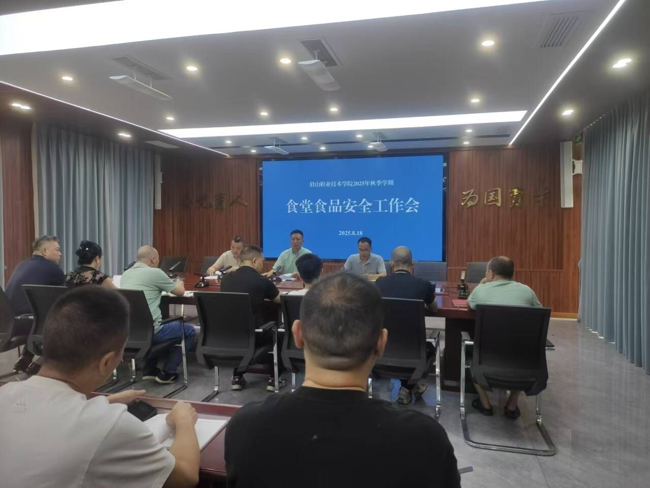 8月18日,后勤资产处组织在行政楼一楼会议室召开2025年秋季学期食堂食品安全工作专题会议。学校党委委员、副校长丁盛出席会议并讲话,会议由后勤资产处处长刘聃主持。