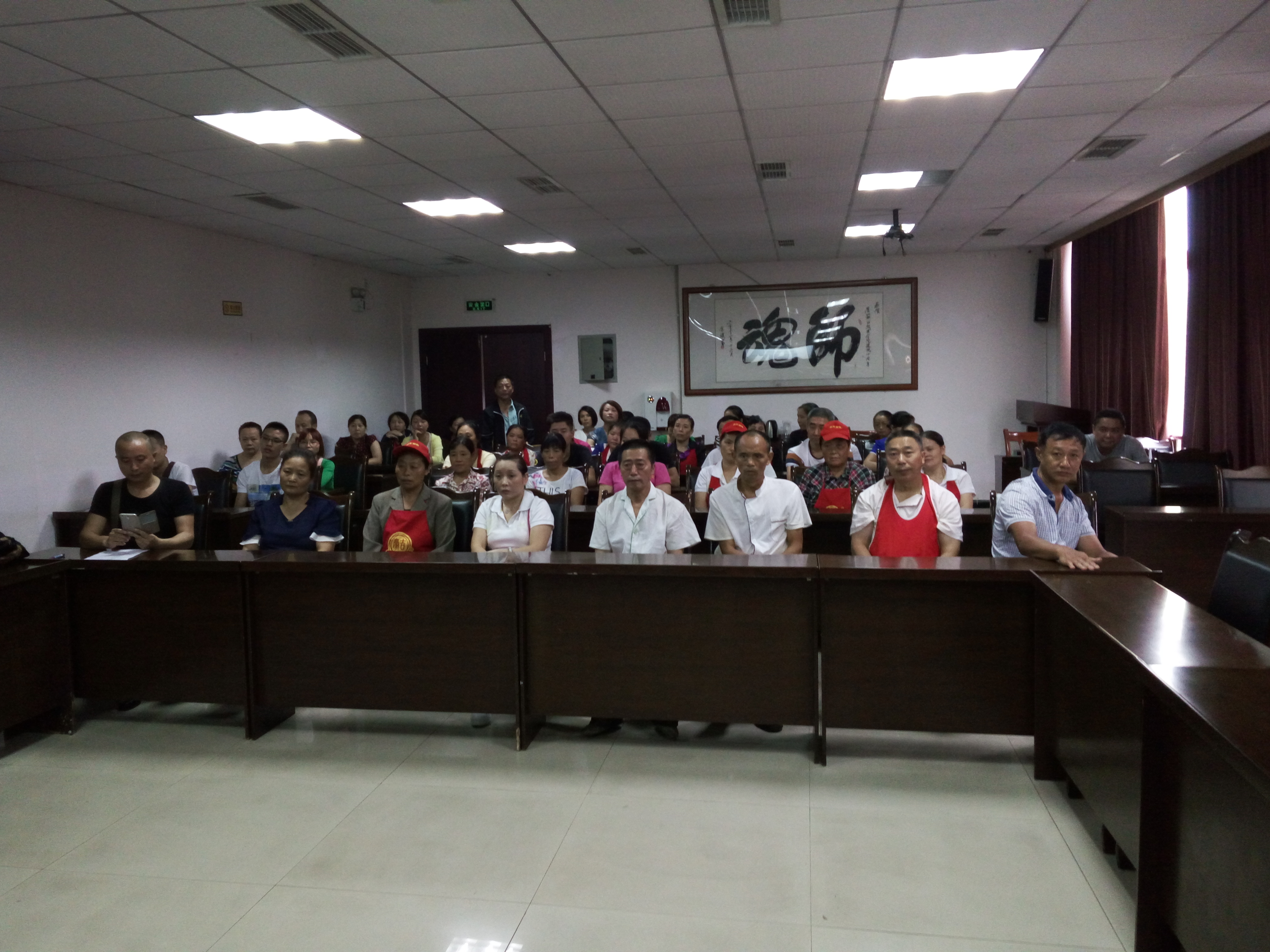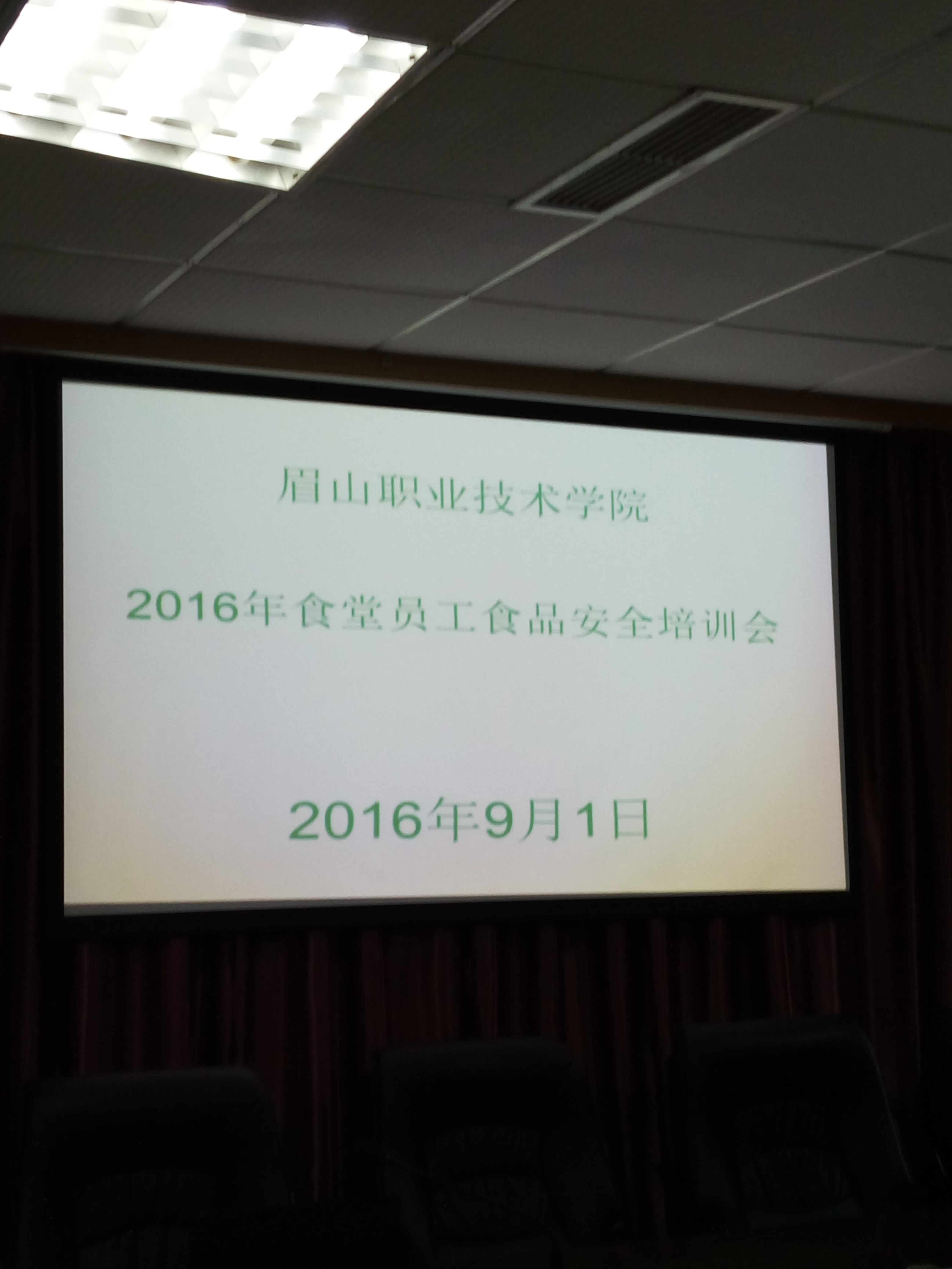 9月1日上午,“眉山职业技术学院2016年食品从业人员食品安全知识培训会”在行政楼一楼会议室会议室召开,会议由餐饮超市管理科科长郑跃林主持,全体食堂管理人员和食堂员工参加了会议。